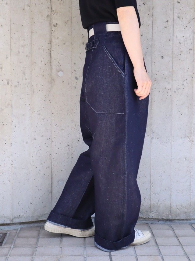 ベーシックなワイドパンツ。 お尻が大きく見えてしまうワイドパンツの難点を改良して、横からのシルエットに特にこだわって作られました。 ヒップ周りはゆとりがありつつも、ウエスト周りはしっかりホールドされ、すっきりとしています。ワイドでかっこいい裾は、下の方が若干細いので、足さばきもよいです。 シャツをインして着るのもおすすめ。 サイドのシルエットもとても綺麗なので、ワーク的な要素がありつつ、きちんと綺麗な雰囲気も持っています。 [Handwerker] Handwerker(ハンドベーカー)とはドイツ語で“職人”。 空想の職業から生まれ出る特別な生活着やワークウエアを作り続けるASEEDONCLÖUDから派生した小さなコレクションです。 毎シーズン新しいコレクションを作り出す中で、ある種の普遍性を有したウエアだけを抜き出し、“職人の服”というカテゴリーでスタートしました。 使用される生地もこだわりぬかれた素材を使用し、日々の仕事や生活で活用できるさまざまなディティールも特徴です。特に明治から続く岡山の帆布工場で、1970年代のベルギー製織機により無糊でゆっくり織られた生地や、シャットル織機での雲斎織を特別な色で染めたシリーズはプロユースにも耐えうるもので、未来のヴィンテージになりうるウエアです。 ・・・・・・・・・・・・・・・・・・・・・・・・・・・・・・・・ □BRAND : Handwerker □No : 261505 HW wide trousers (Denim) □MATERIAL : Cotton 63% , Linen 37% (Denim) □COLOR : Indigo □SIZE : XS : ウエスト 75cm / 股上 30cm / 股下 69cm / ヒップ 112cm / わたり幅 37cm / 裾幅 25cm S : ウエスト 79cm / 股上 30.5cm / 股下 69.5cm / ヒップ 117cm / わたり幅 38cm / 裾幅 27cm M:ウエスト 83cm / 股上 31cm / 股下 72cm / ヒップ 120cm / わたり幅 39cm / 裾幅 28cm □着用モデル身長 : 154cm ::::::::::::::::::::::::::::::::::::::::::::::::::::::::::::::::::::::::::::::::::::::::::::::::: ・掲載商品の画像に関しまして、ご覧になるブラウザやモニター等の環境により色の見え方が異なる場合がございます。あらかじめご了承ください。 ・営業日の14時までのご注文は当日発送、それ以降は翌営業日に発送いたします。 ・ご注文後の内容変更、キャンセルは一切お受けすることができません。掲載内容(画像のカラー等)と実際の商品との若干のズレに関しましても返品対応いたしかねます。 ・ご注文された商品と異なる商品が届いた場合や商品に欠陥があった場合は、商品到着後3日以内にご連絡をお願いいたします。在庫のある商品につきましては交換のお手続きをさせて頂きます。在庫のない商品につきましては返金のお手続きをさせて頂きます。 ・実店舗と在庫を共有しております。万が一売り切れとなった際はご容赦ください。 ・ご不明な点がございましたら、お気軽にお問い合わせください。