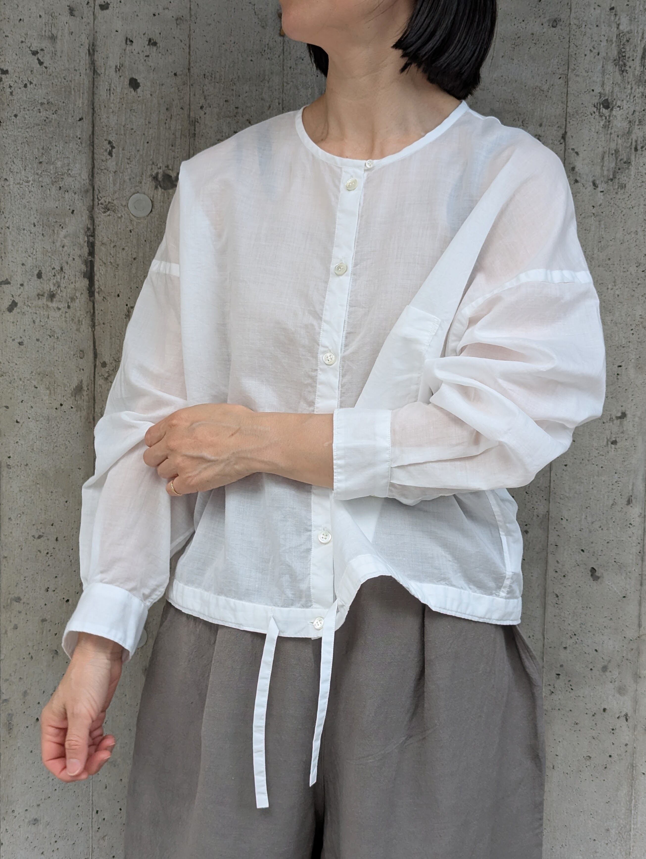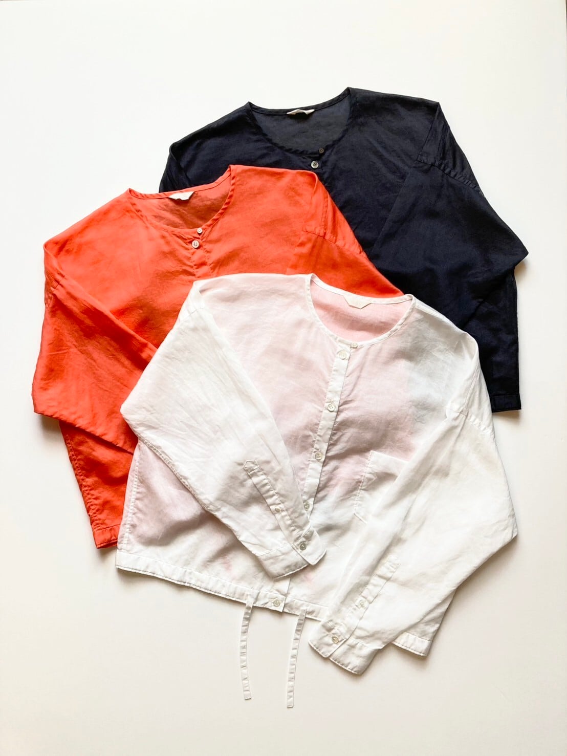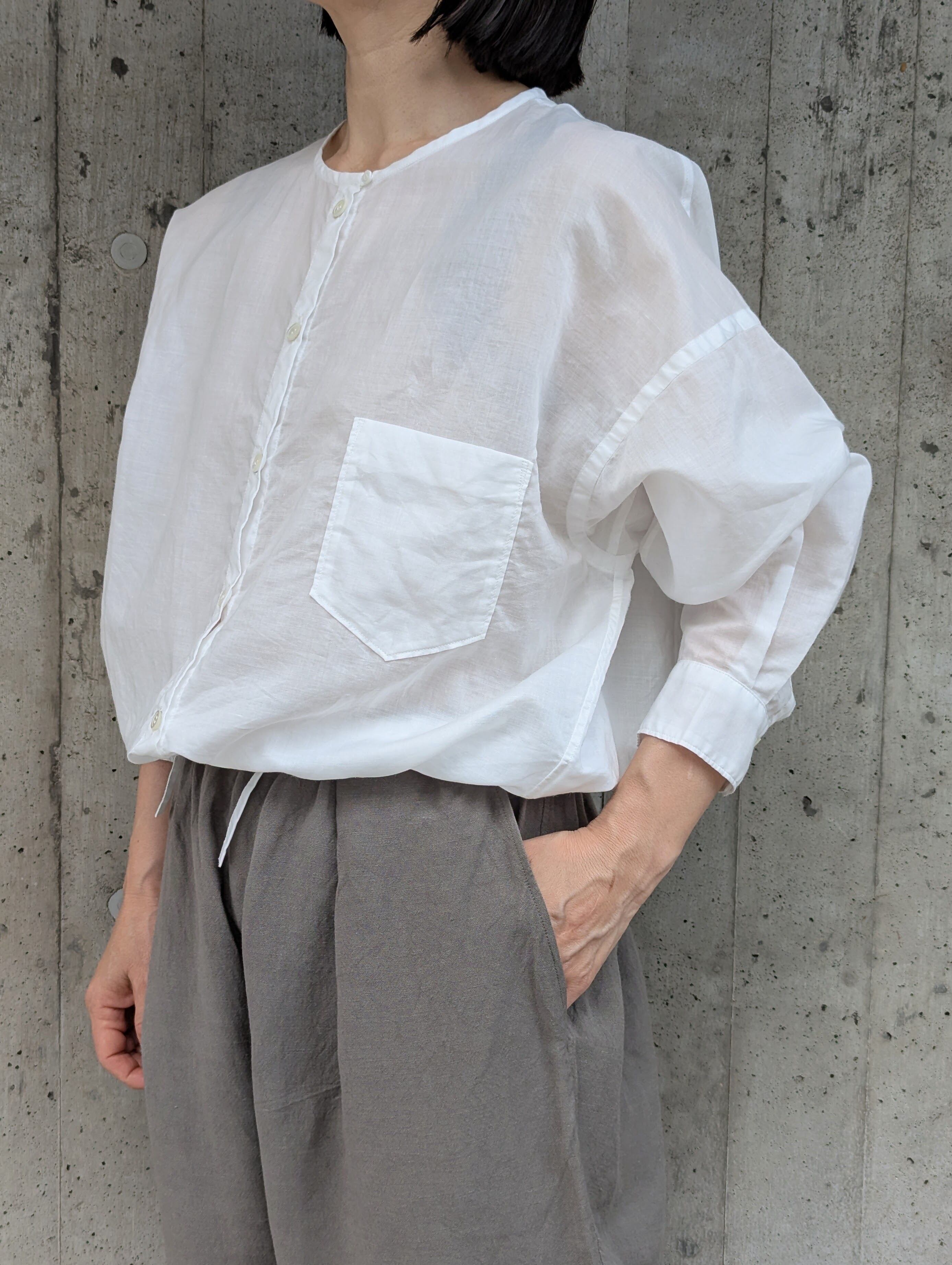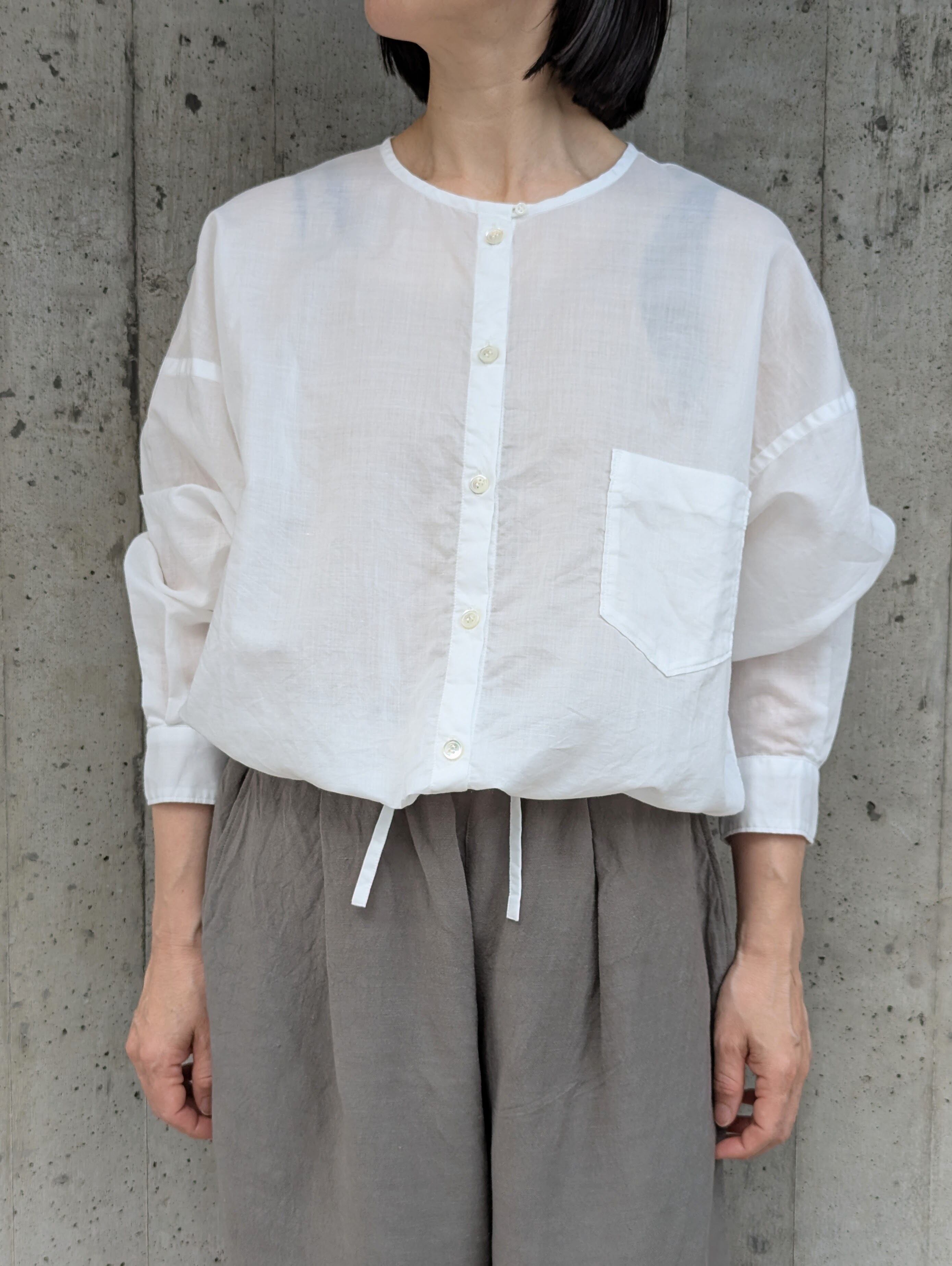 涼しげで軽やかなコットンとラミーのブラウス。程よいハリ感のある素材は、ふんわり柔らかなリネンとはまた違ったピリッとしたクールさがあります。