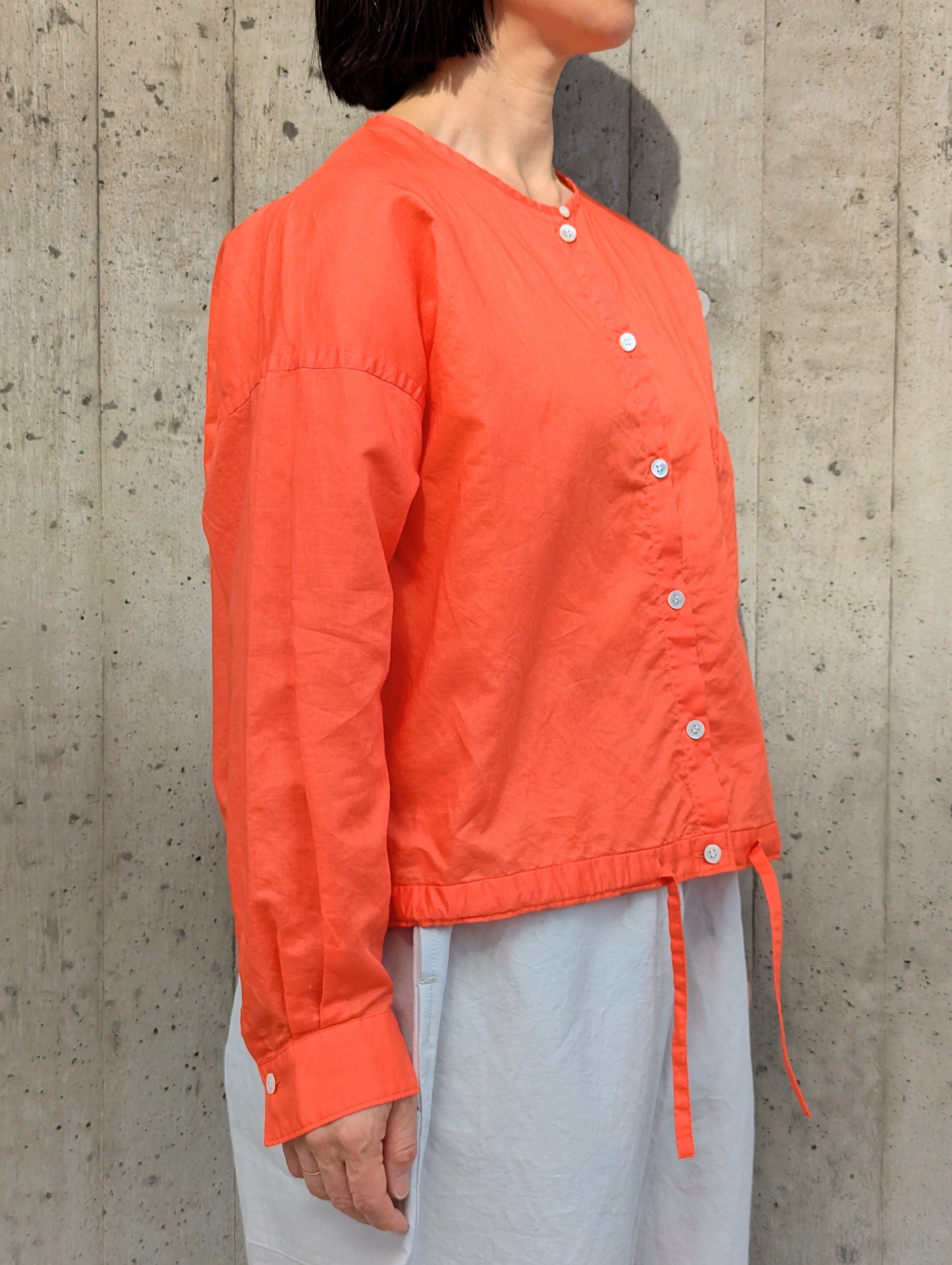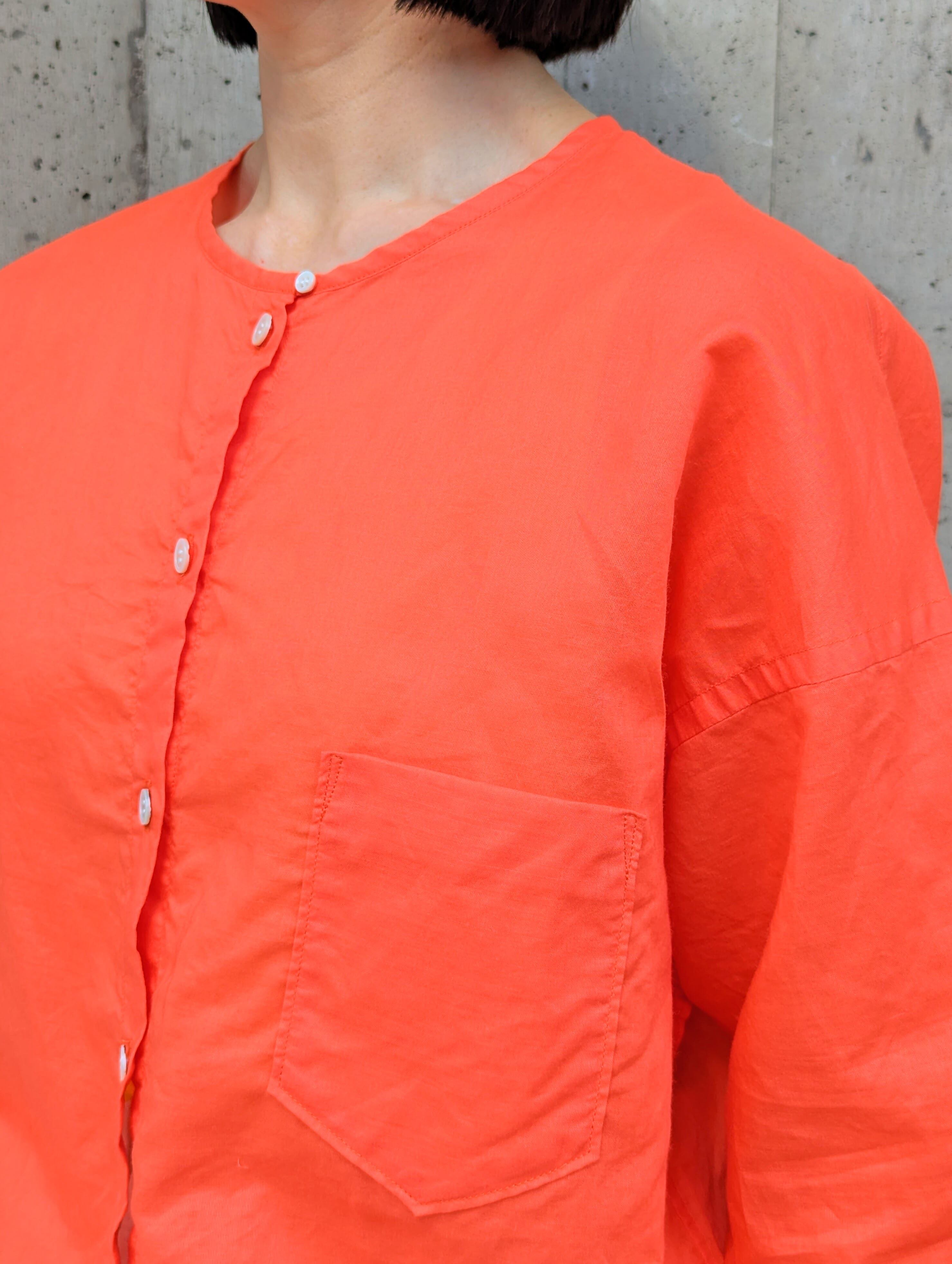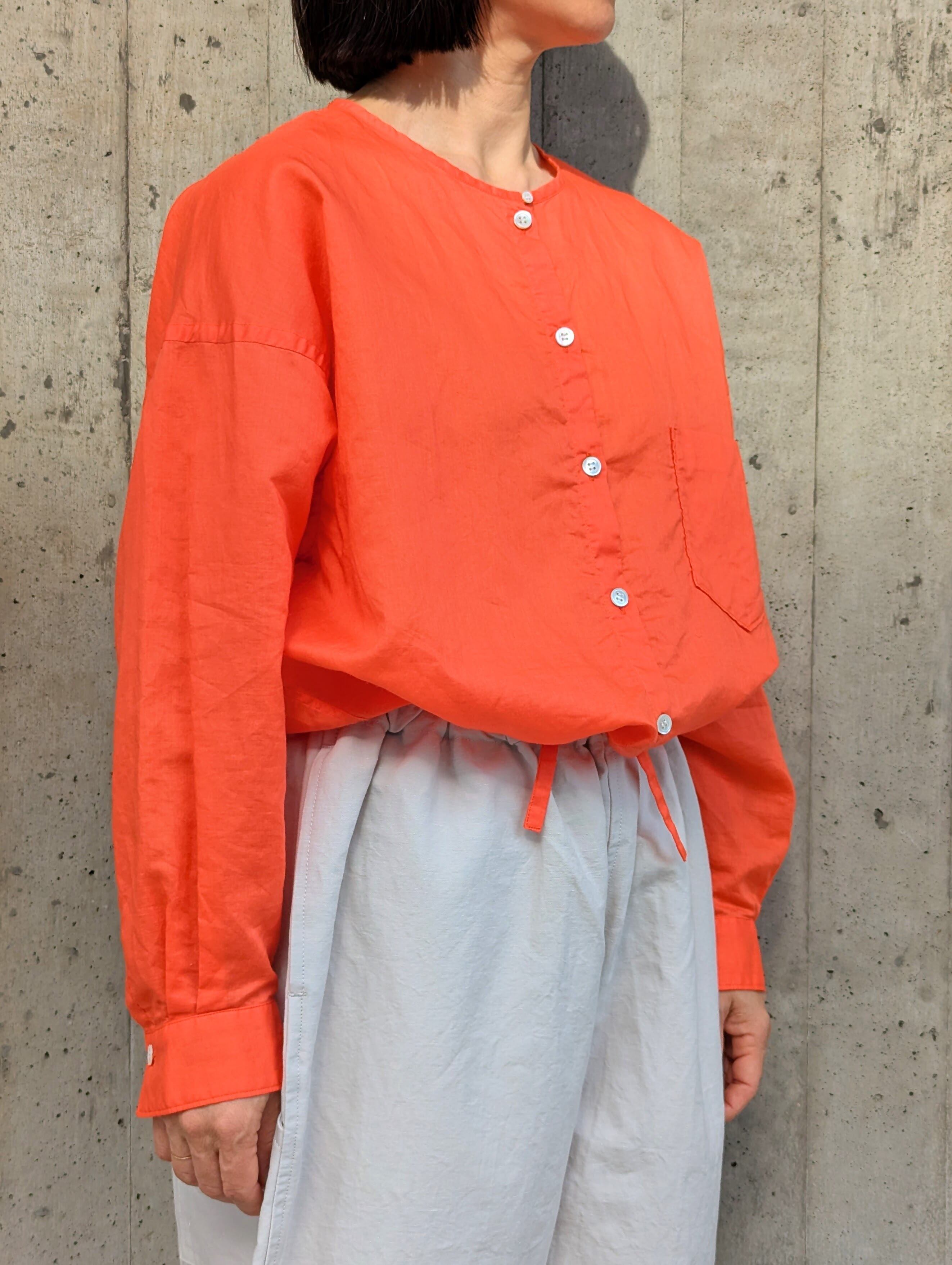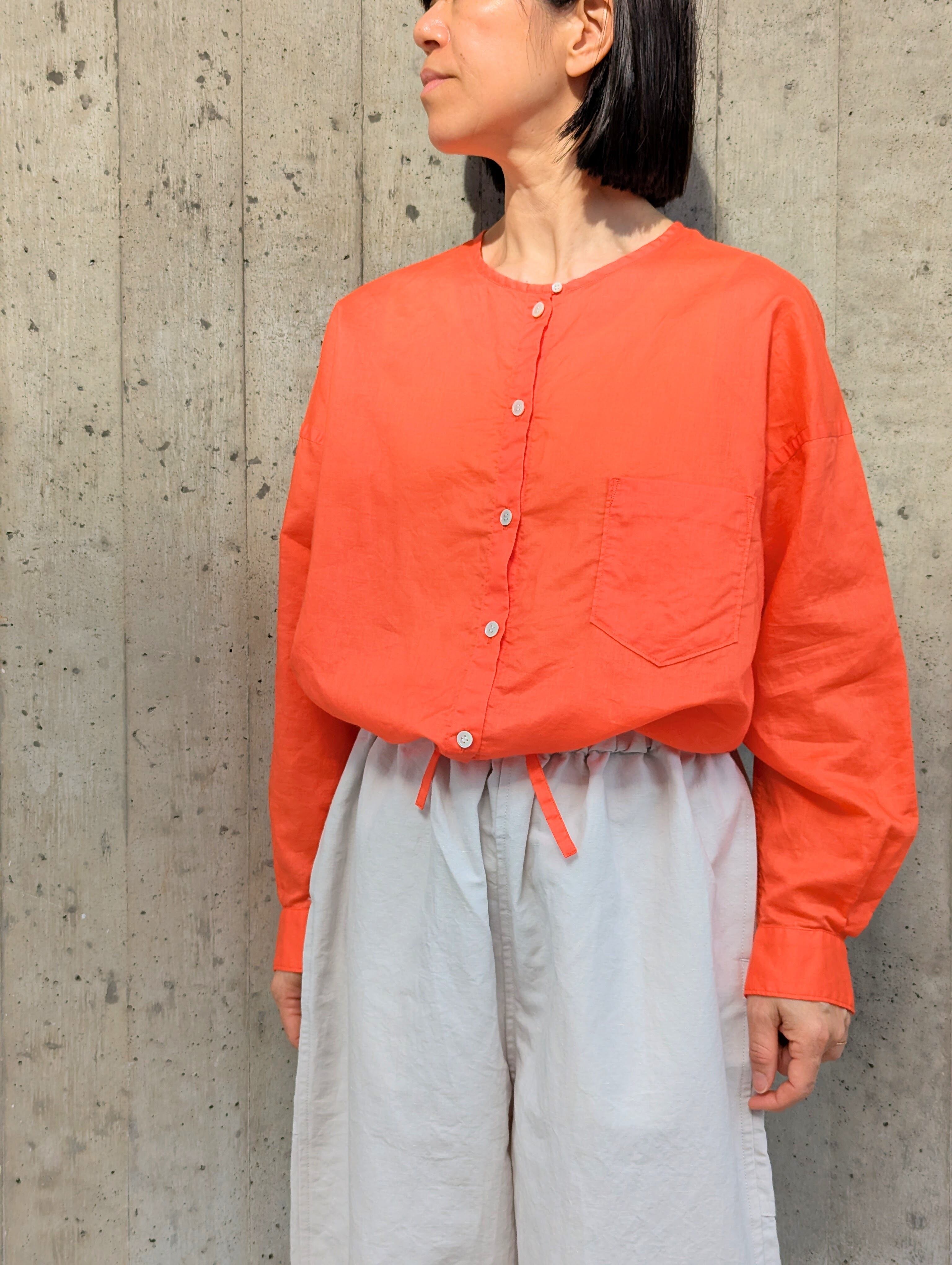 涼しげで軽やかなコットンとラミーのブラウス。程よいハリ感のある素材は、ふんわり柔らかなリネンとはまた違ったピリッとしたクールさがあります。