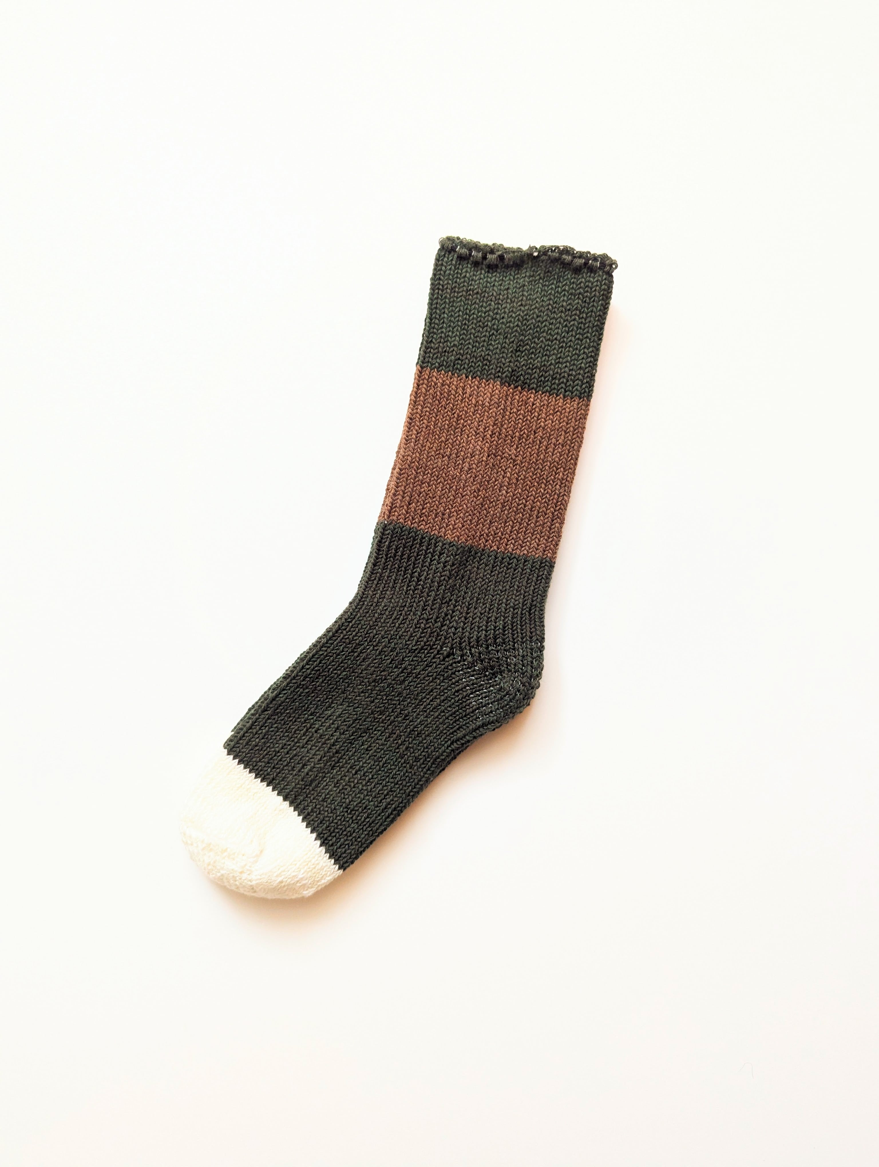 シーズンカラーの色糸を使って国内の軍足工場で編まれています。