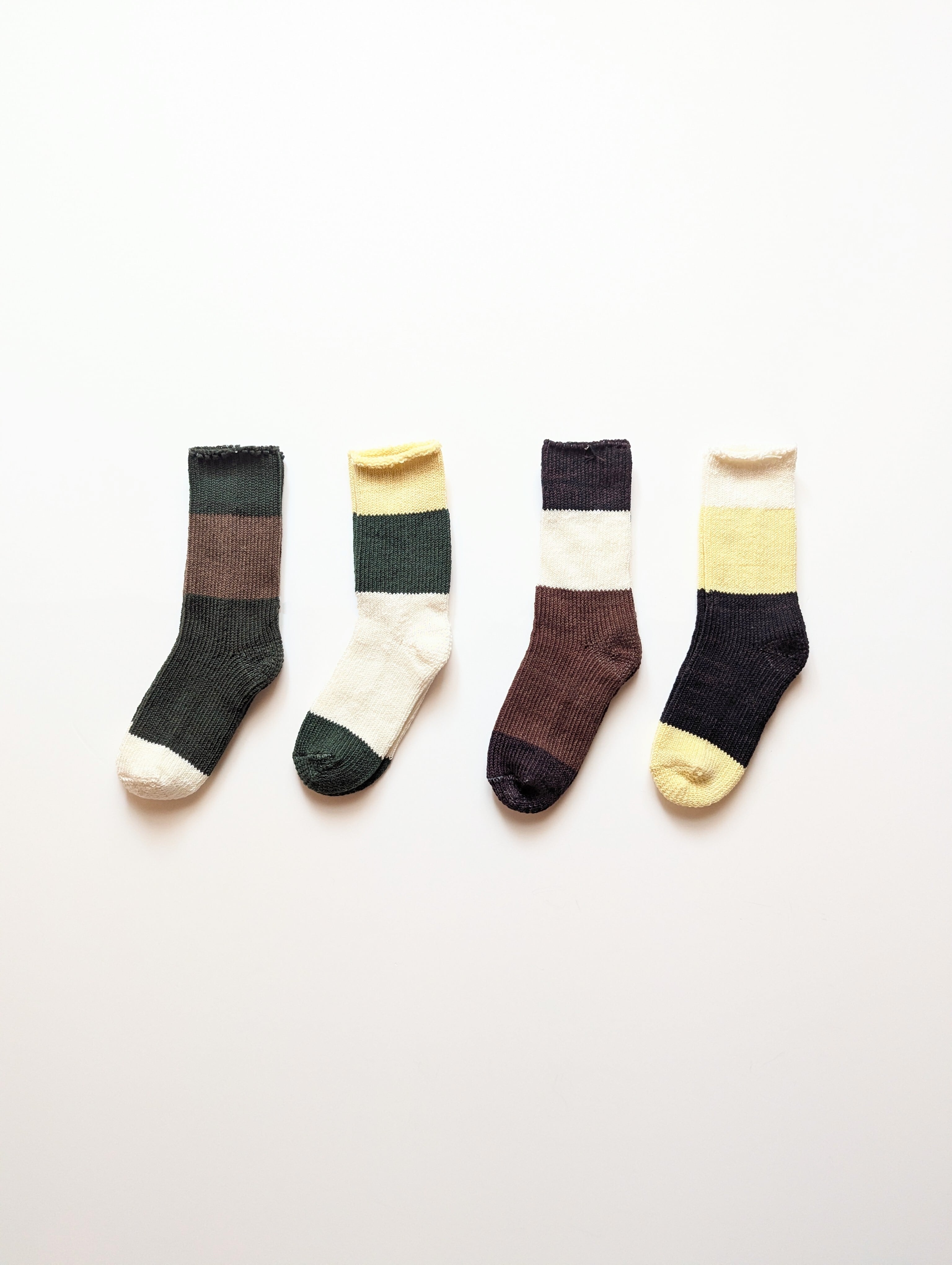 一見シンプルな靴下ですが、一足に7から9本ほど違った糸を使用されています。