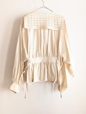 上質なコットンとシルクをブレンドした柔らかな素材で、シーズンを通して快適にお使いいただけます。細部に施されたレースが、女性らしい柔らかな印象を与え、セーラーカラーはクラシカルでありながらもモダンな雰囲気を演出します。上質な素材感と心地よい着心地を追求した一着です。