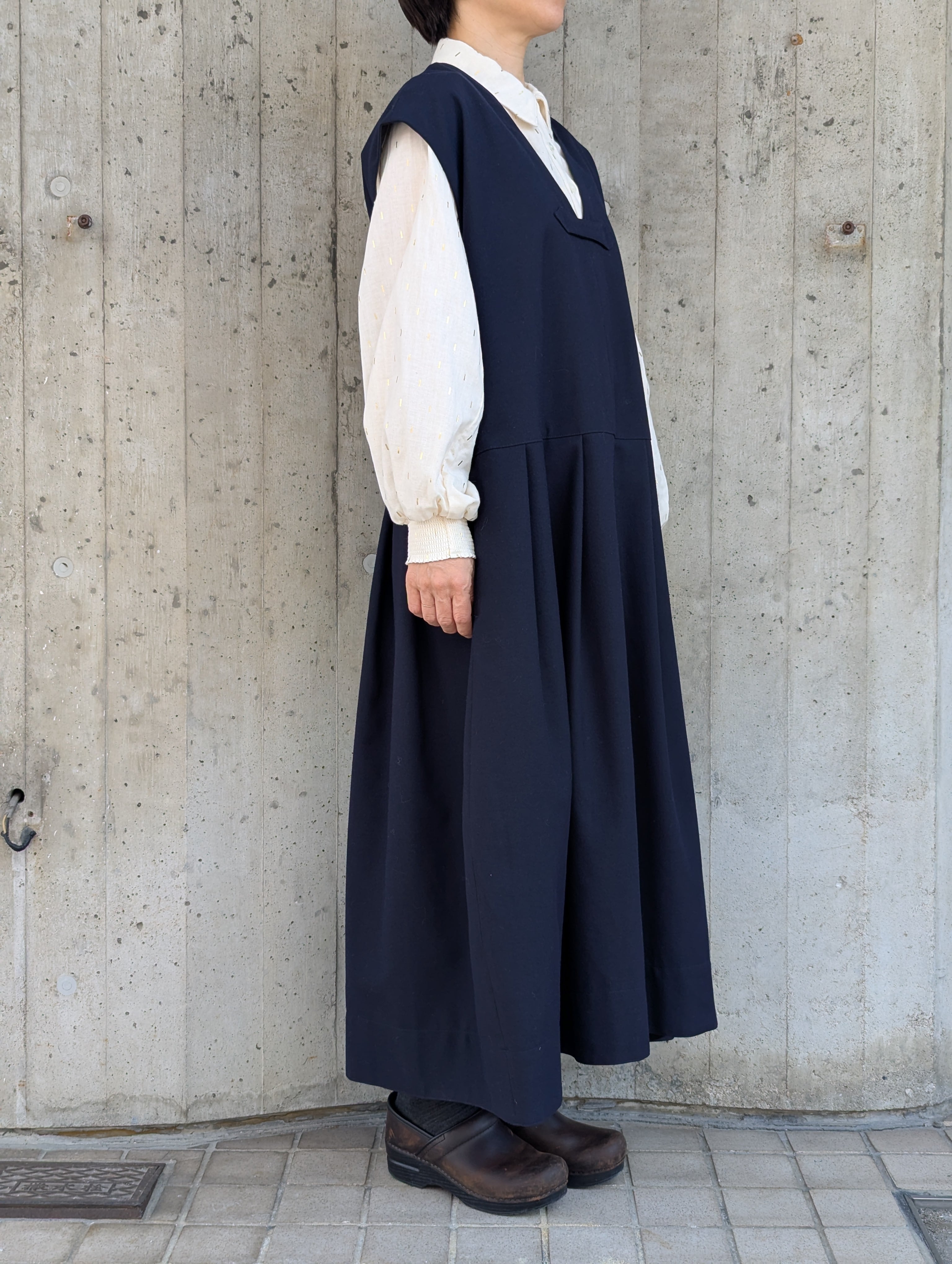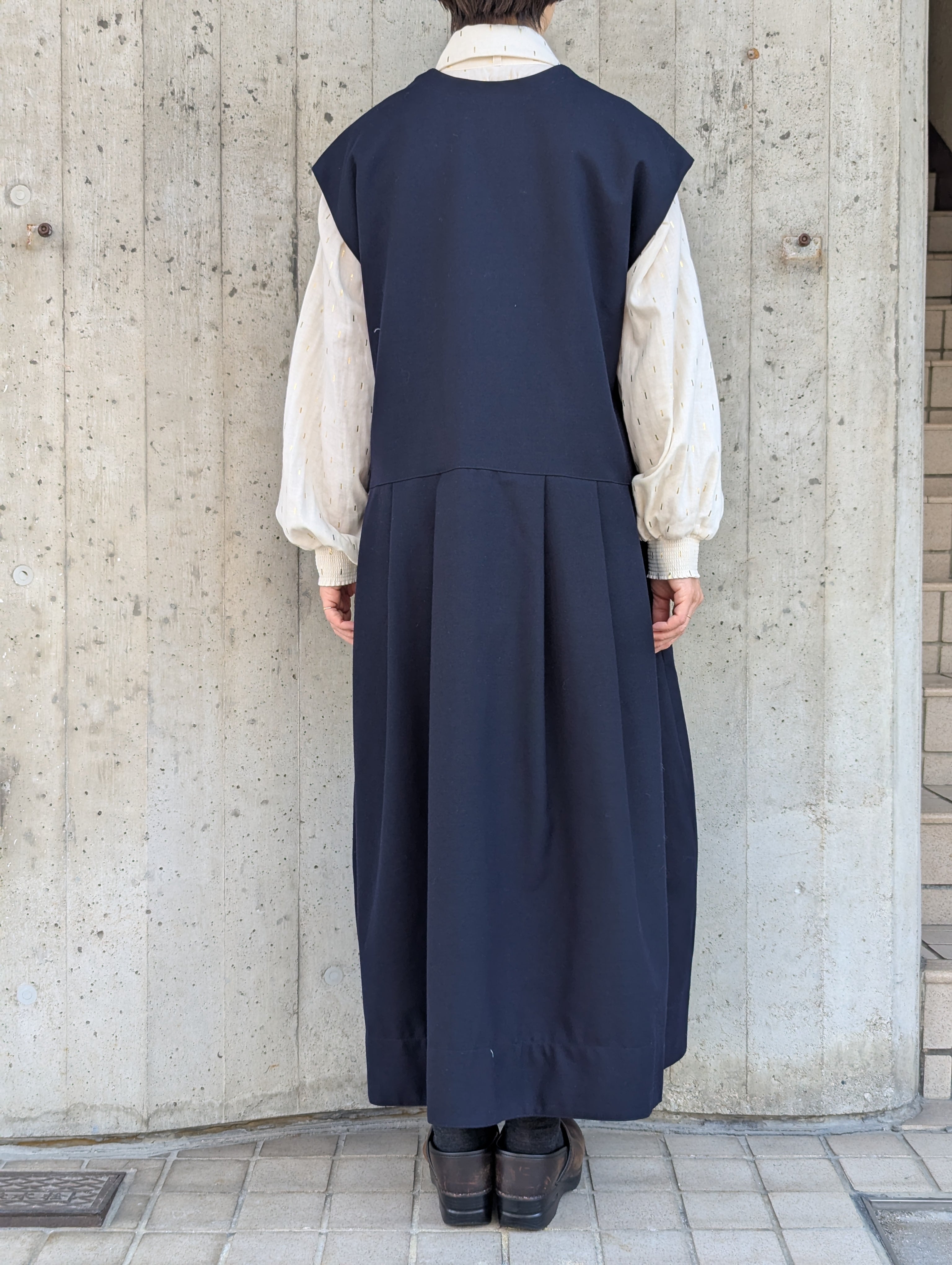 比較的シンプルなデザインかつ、首元は深いVネックのため、インナー合わせのレイヤードなどを楽しんだり、足元にロングブーツを合わせるなど、色々なスタイリングで着て頂けたら嬉しいです。