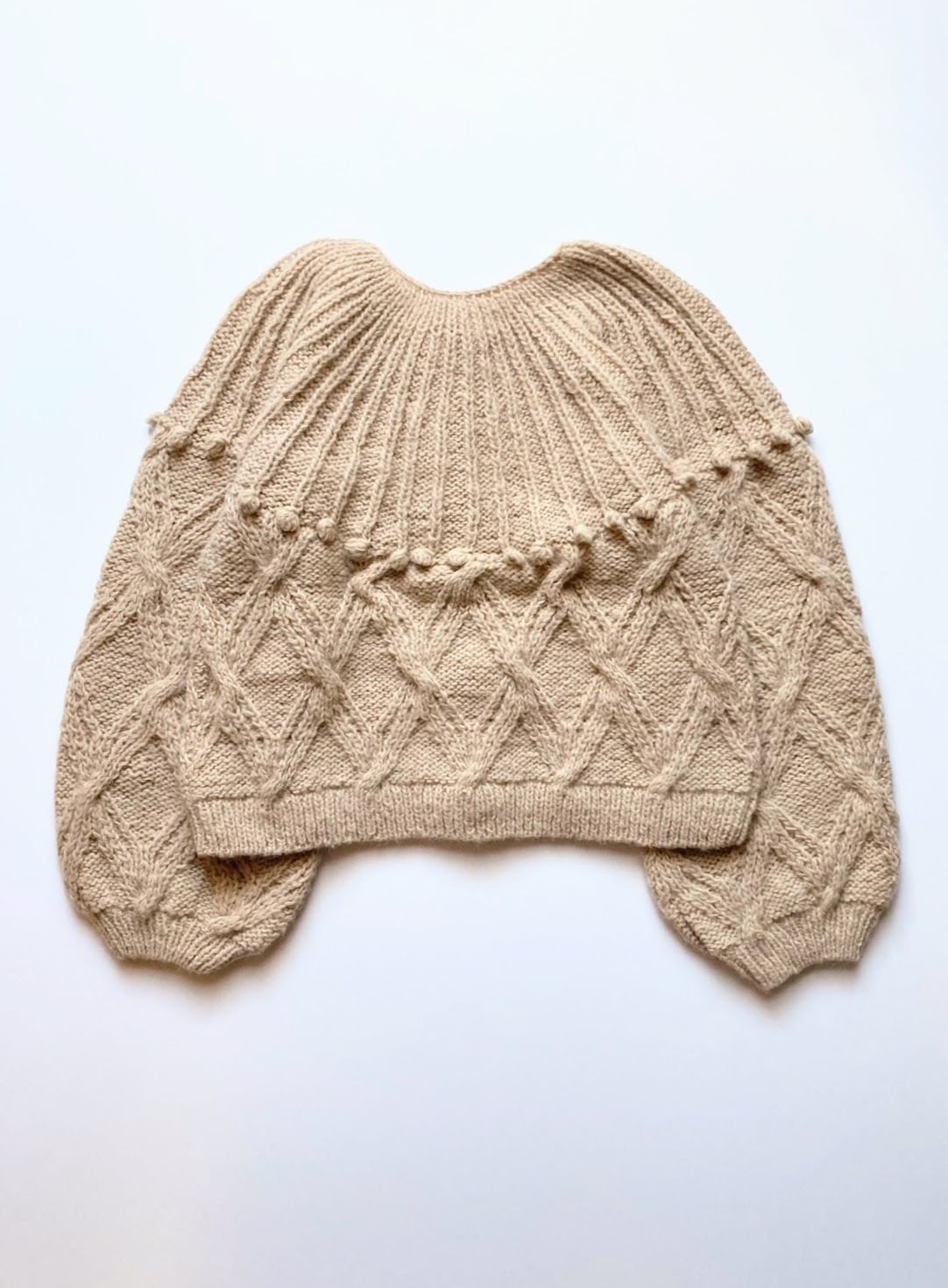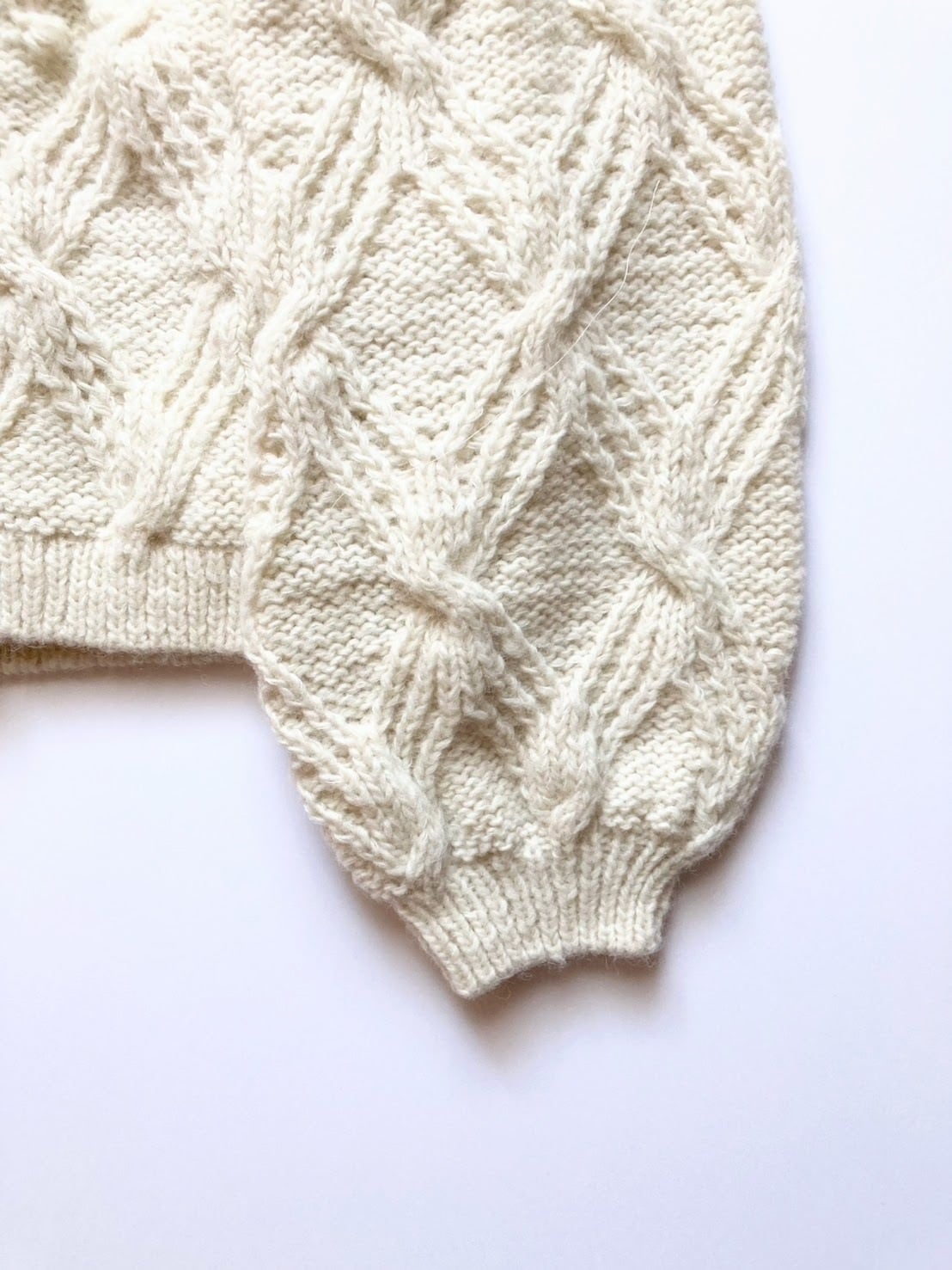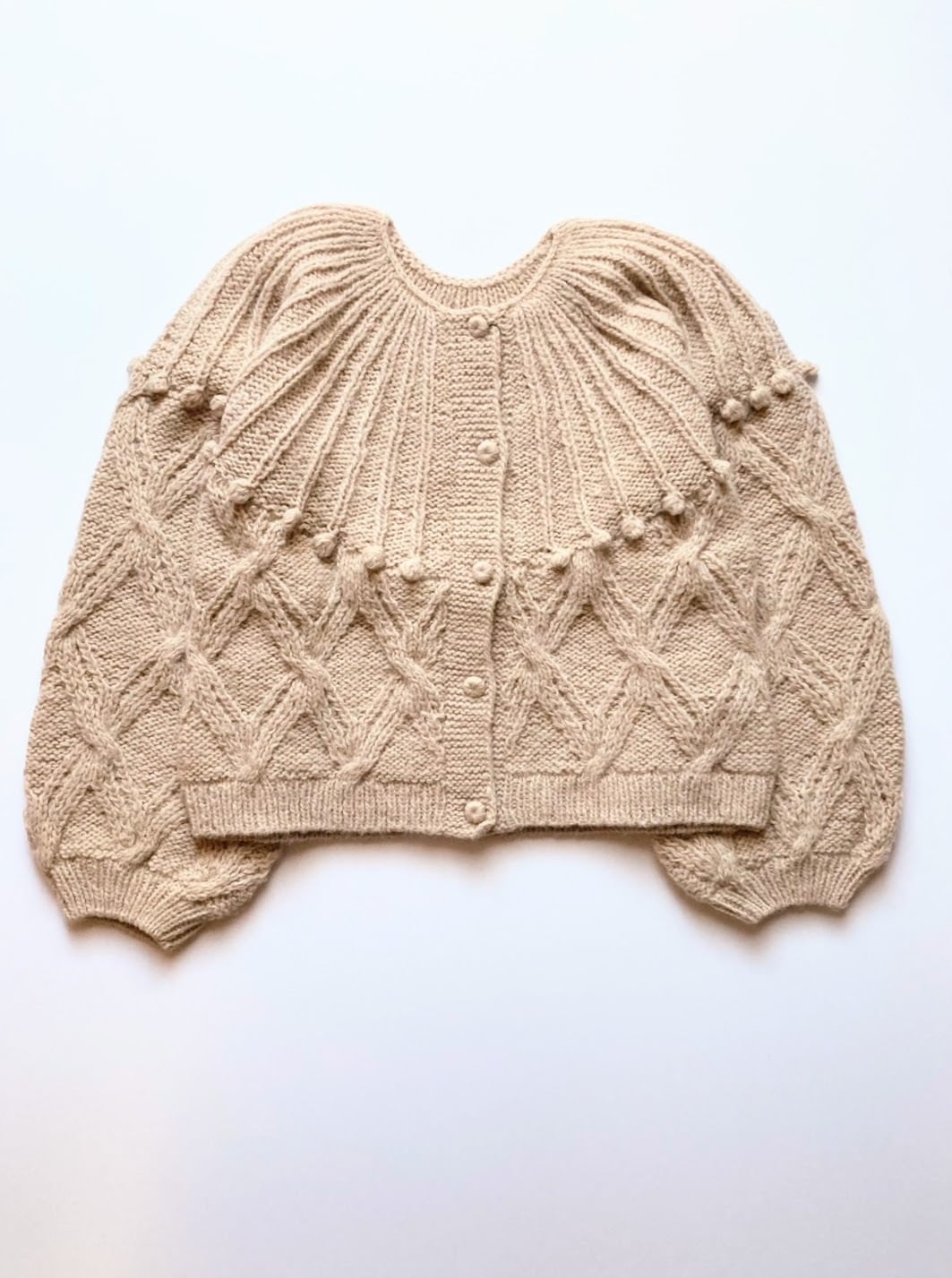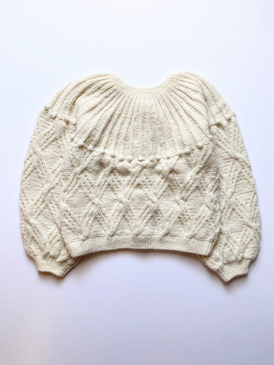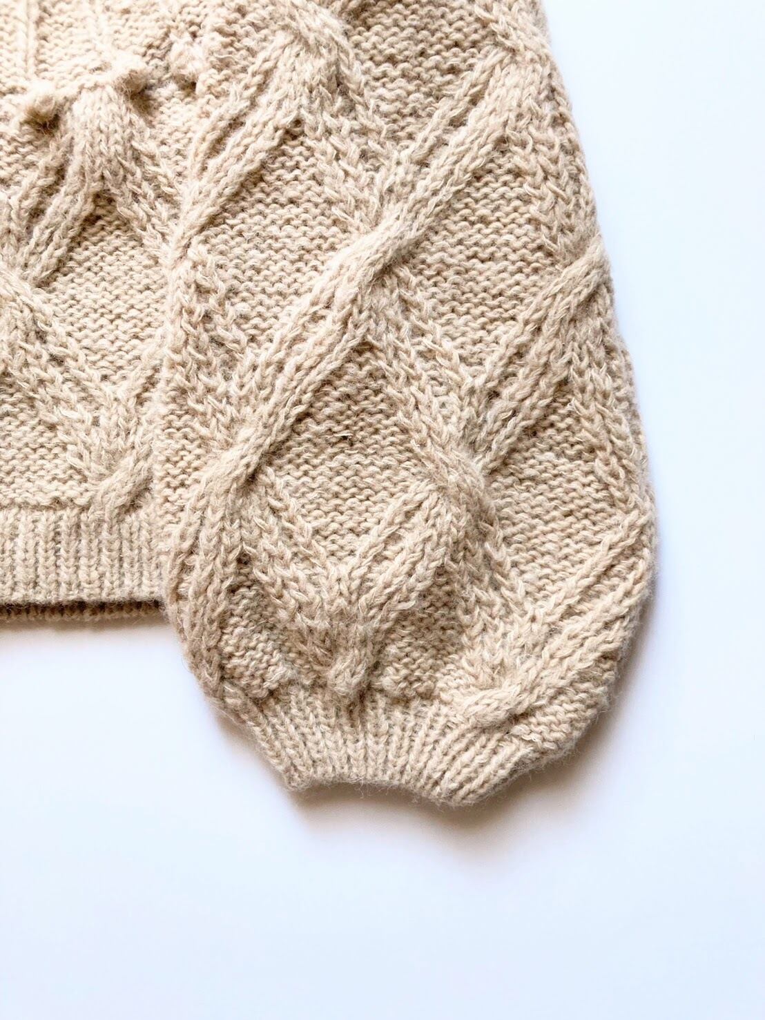 この手編み2wayニットは、カーディガンとしても自由に楽しめるデザインです。手編みならではの求心柄が特徴で、あたたかみと個性を兼ね備えています。天然繊維にこだわり、ウールとアルパカが贅沢に使用されているため、肌触りも抜群です。