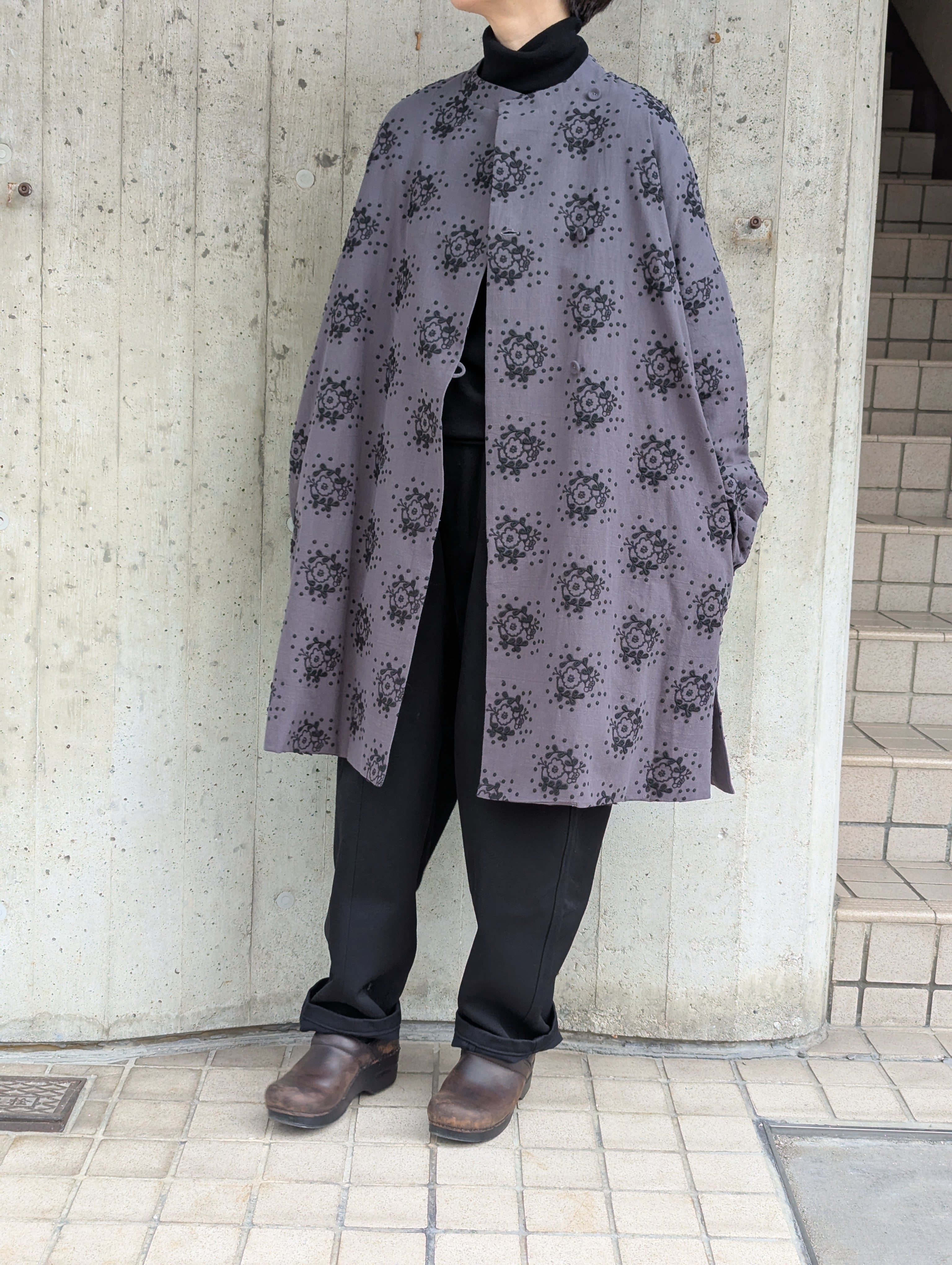 刺繍が入っていることでのよそよそしさはなく、カジュアルさと上品さを兼ね備えた他にはないコートです。脇のスリットが軽さを足してくれているので、重たいイメージではなく、普段から着やすいアイテム。きちんとした雰囲気のお洋服にも合うのに気を使わないで着用できるところがお勧めです。