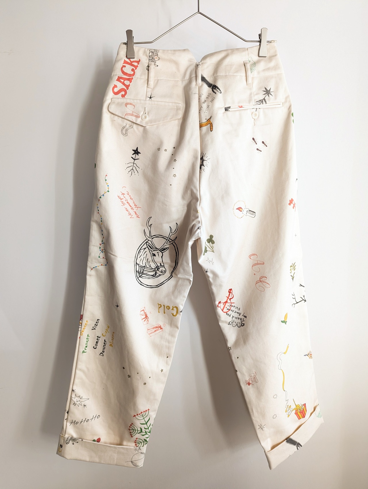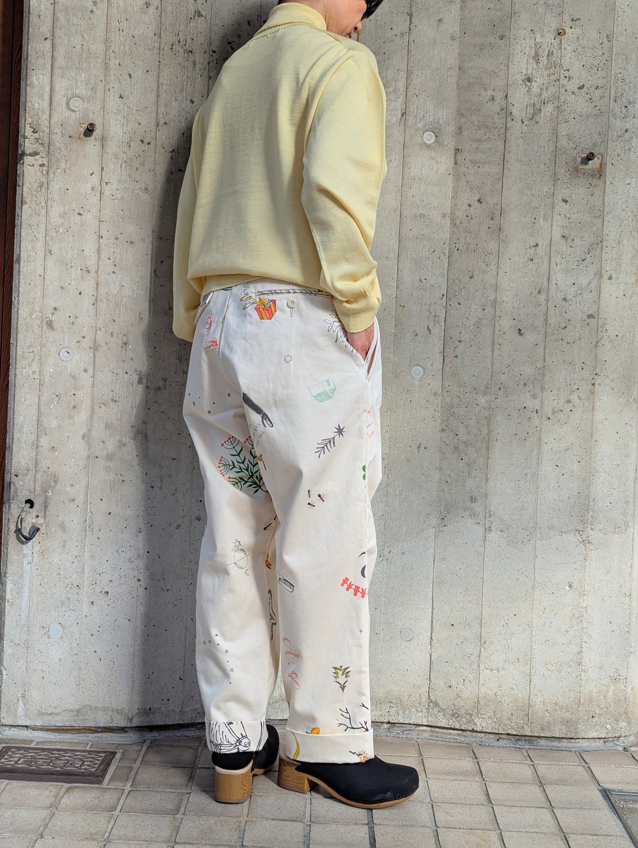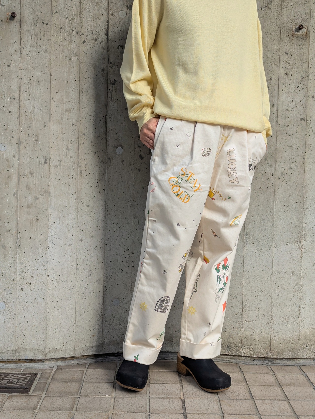 手紙管理や天体観測の勉強の際に履くパンツです。ウエストのデザインはセーラーパンツがベースで、裾はダブルになっています。