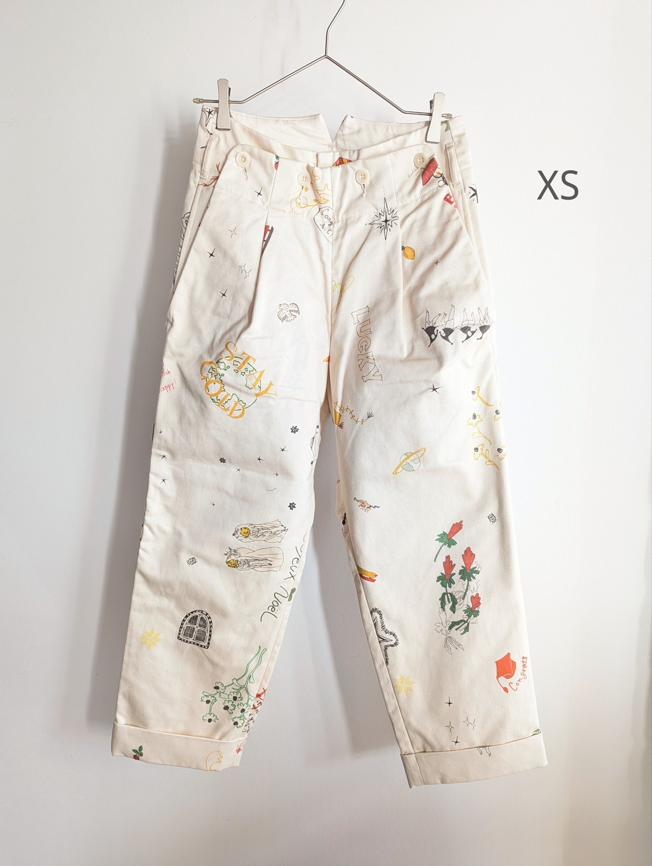 XS : ウエスト 72cm / 股上 35cm / 股下 60cm / ヒップ 117cm / わたり幅 32cm / 裾幅 20.5cm
