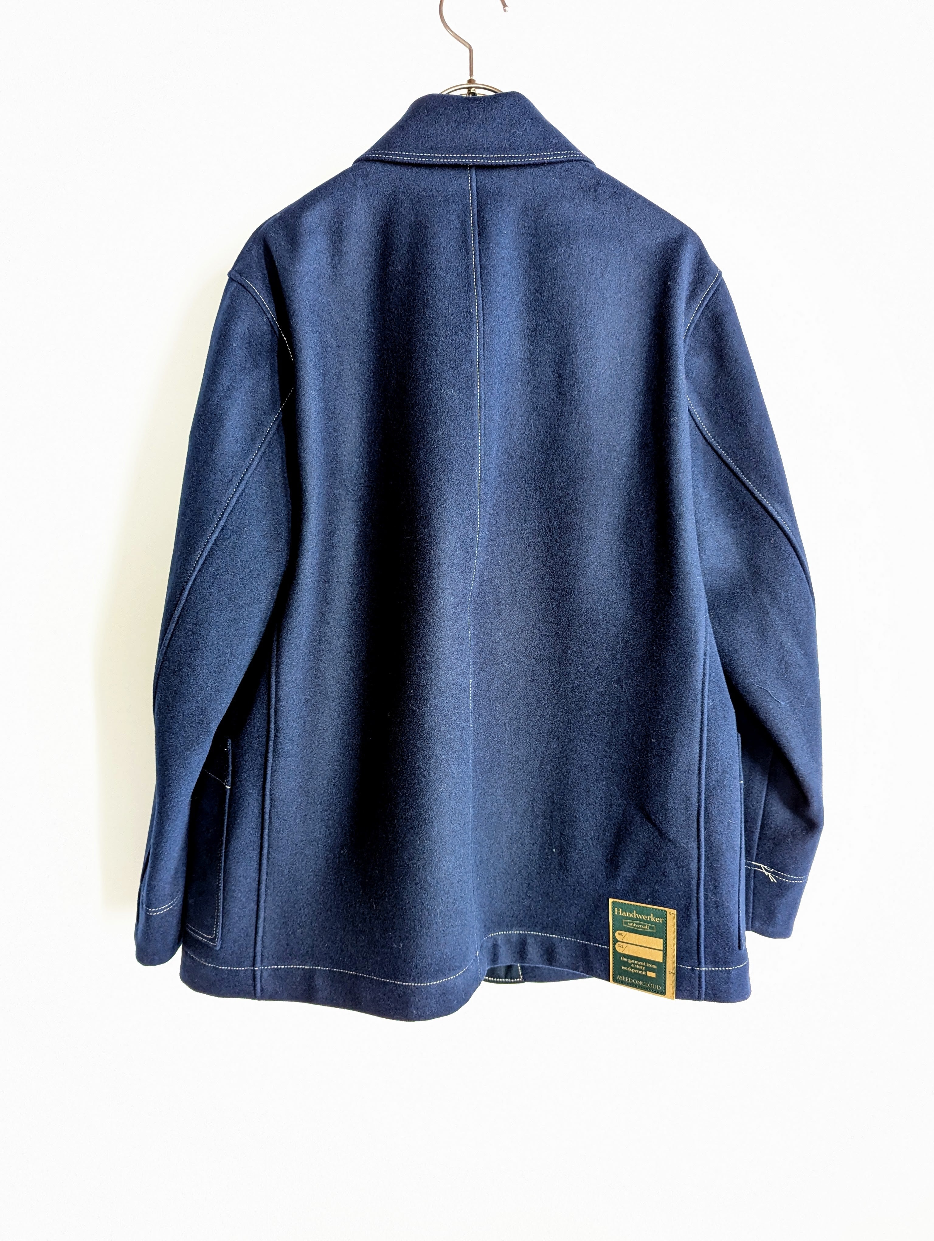 メルトン素材はウールを整理加工で圧縮、押さえることで作成するので、風合いに関しては原料が大きな割合を占めるのですのが、上記の原料を使用することでメルトンのハリ感・重量感はありながらもソフトなタッチと滑らかな風合いに仕上げています。