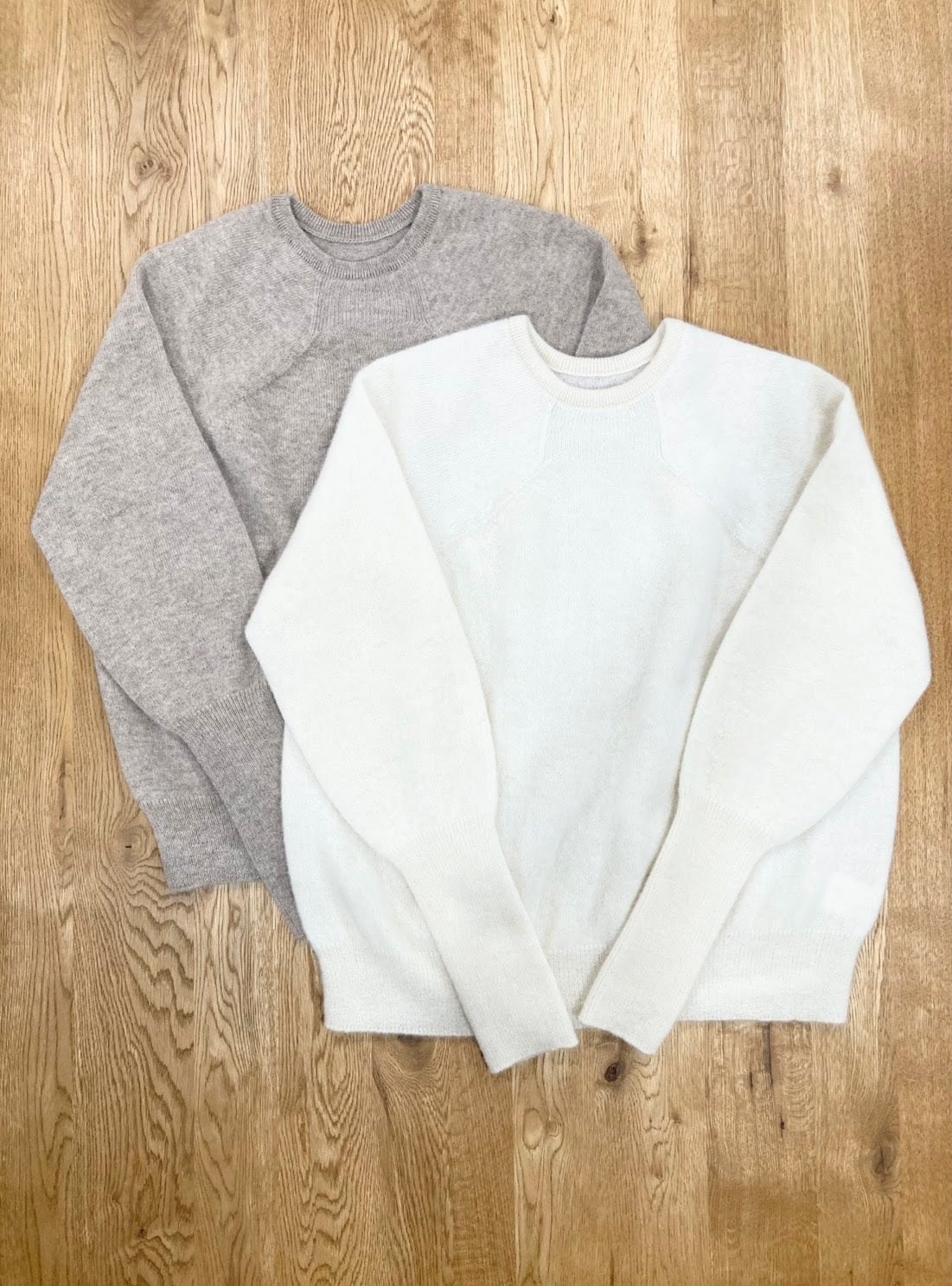 ベビーアルパカの糸を一本取りで作られた、ふんわり軽いクルーネックニットです。