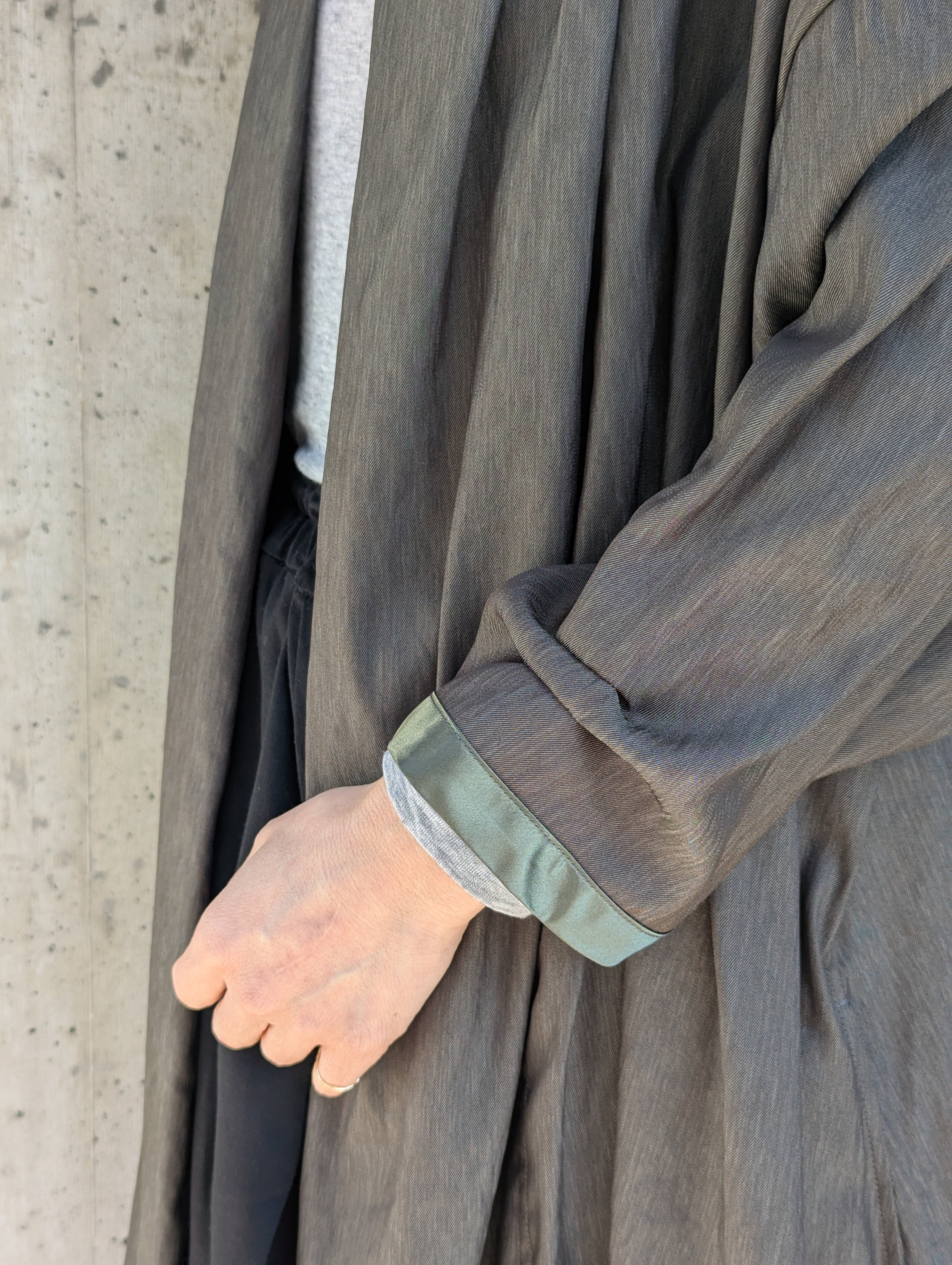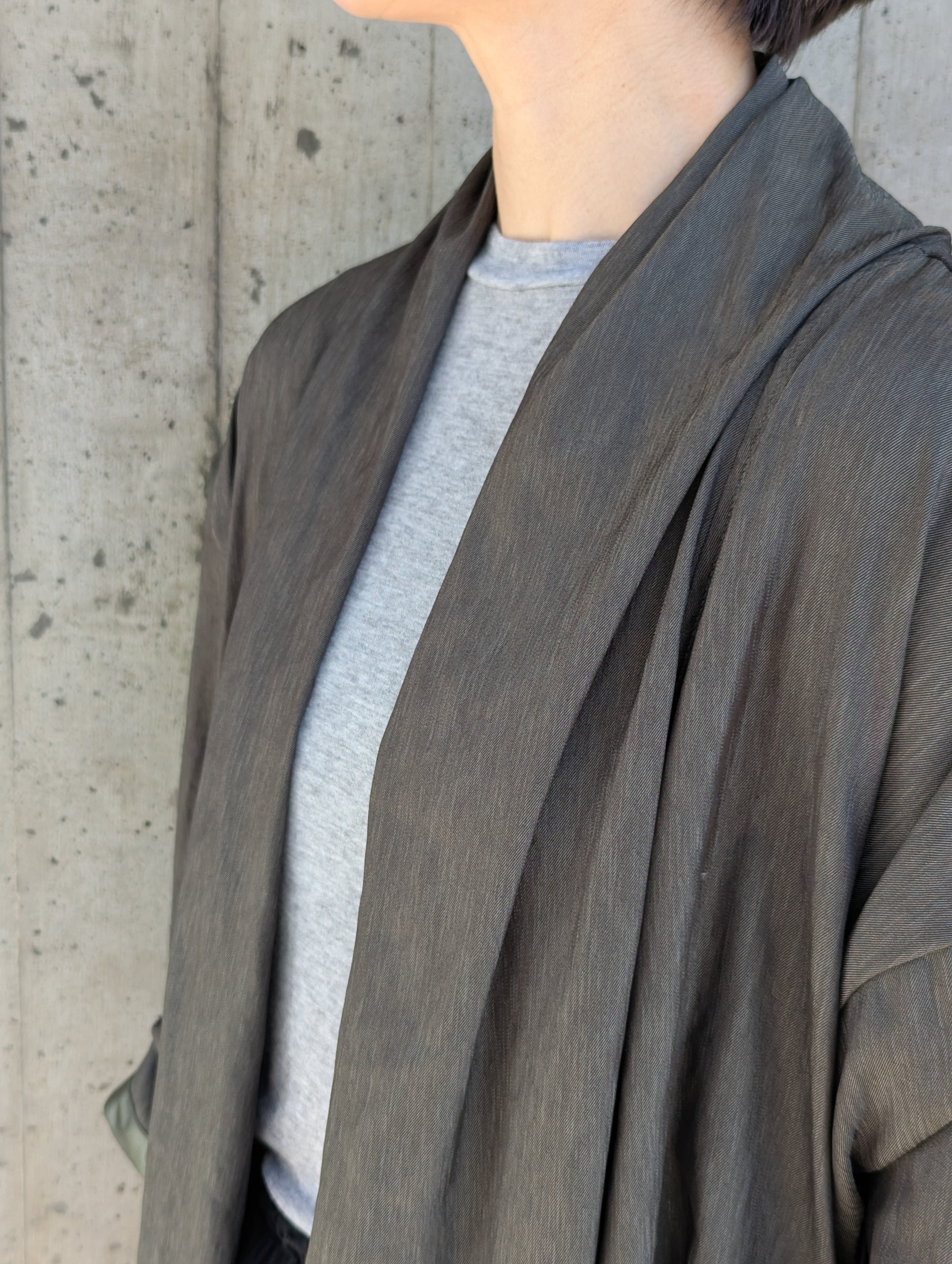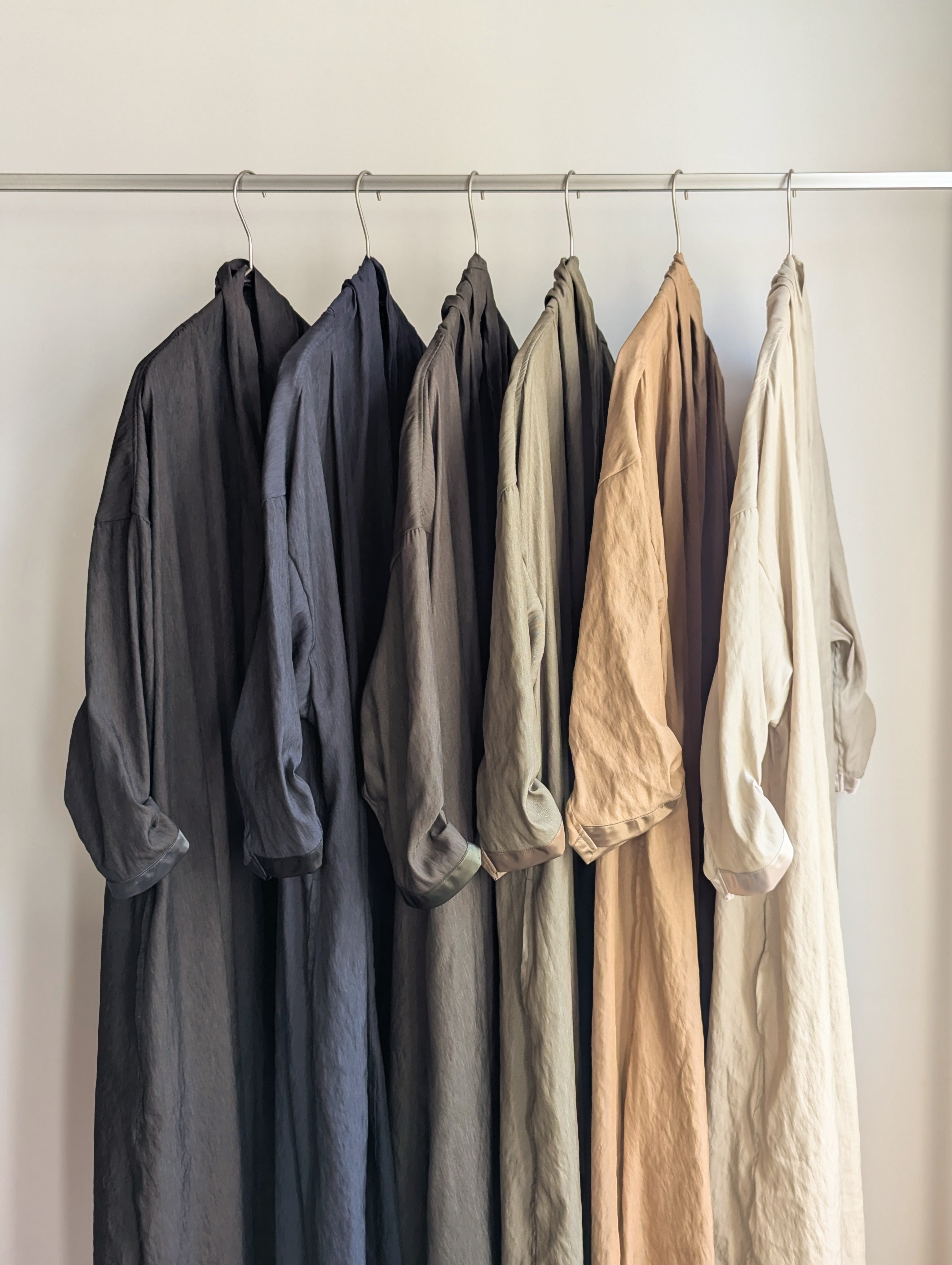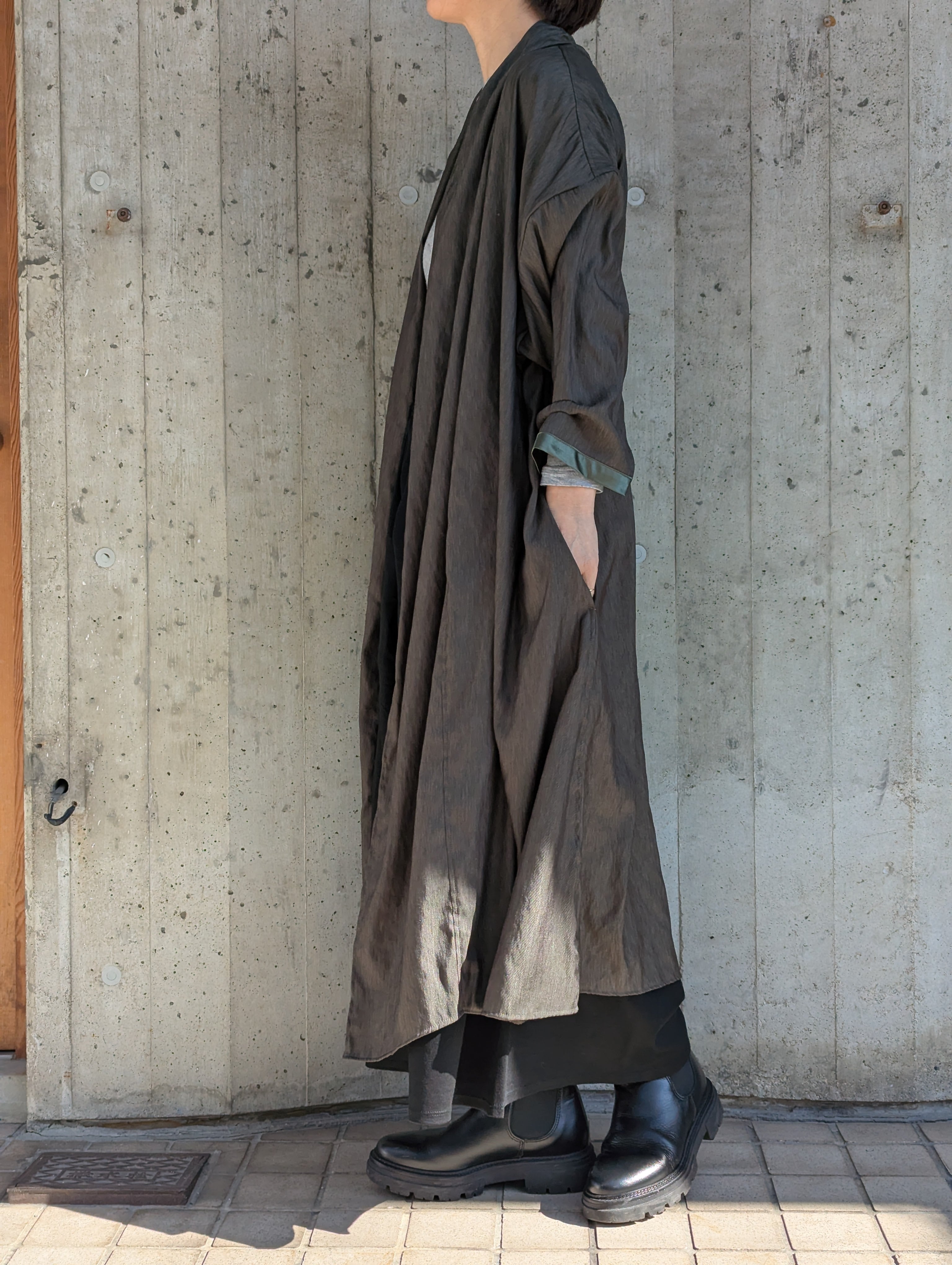 できるだけ心を平らにして、糸や生地の声に耳をすまし、素材がなりたいシルエットを感じ取る、その一着の為のディテールを丁寧に作り込む。