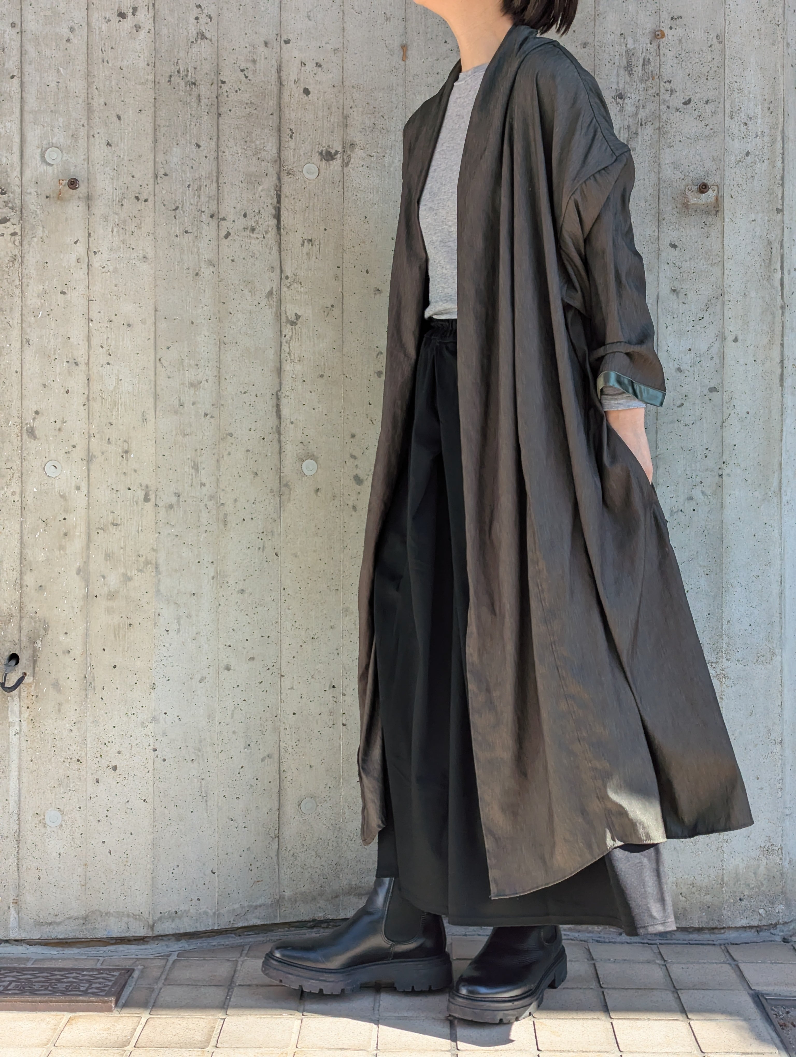 できるだけ心を平らにして、糸や生地の声に耳をすまし、素材がなりたいシルエットを感じ取る、その一着の為のディテールを丁寧に作り込む。