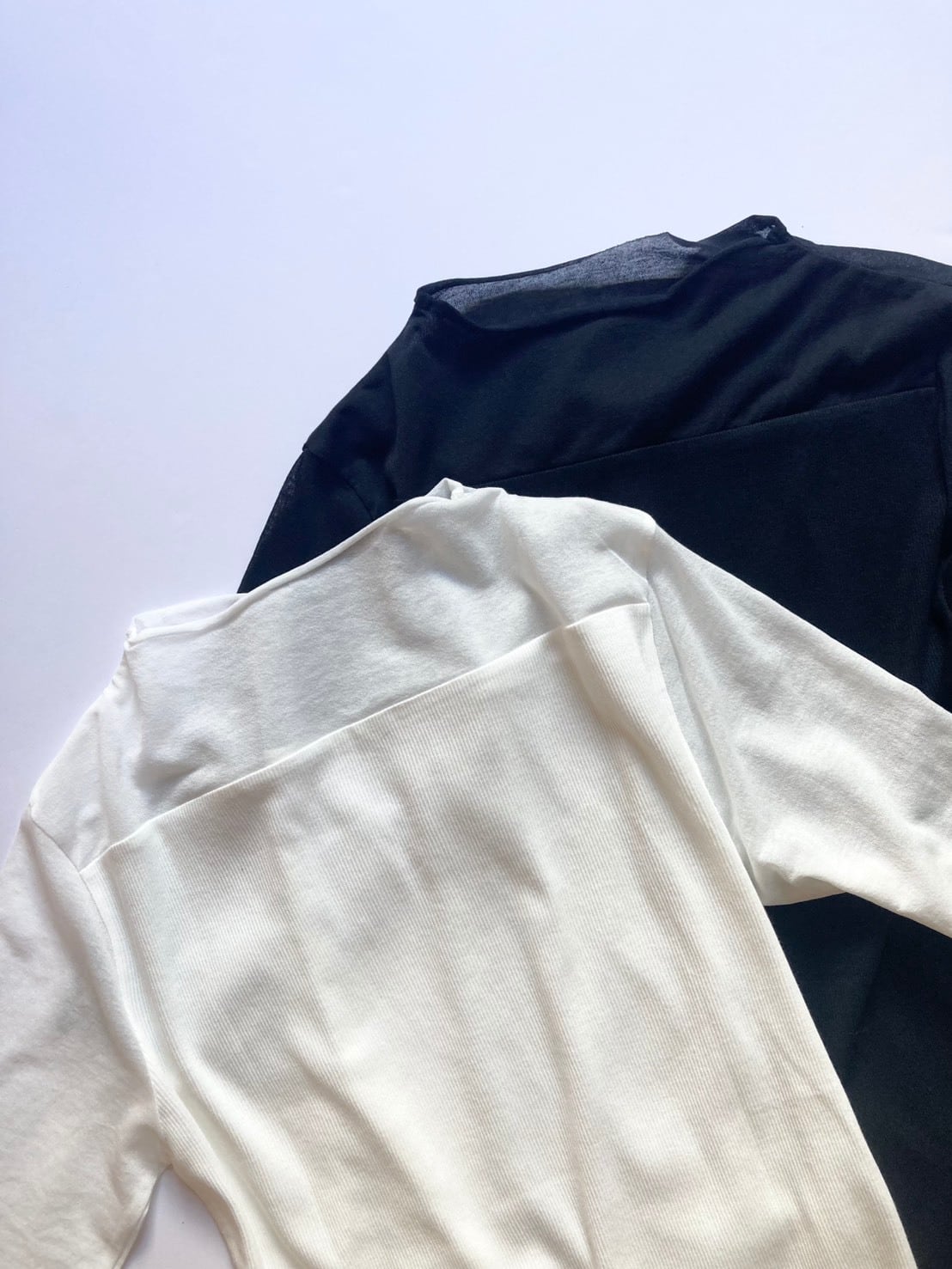 [Porter des boutons] P-24129 シアーロールネックテレコ5分袖