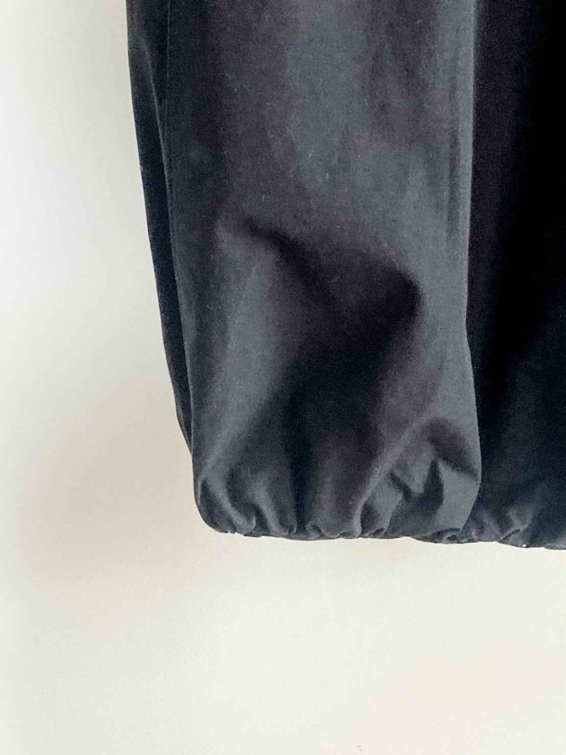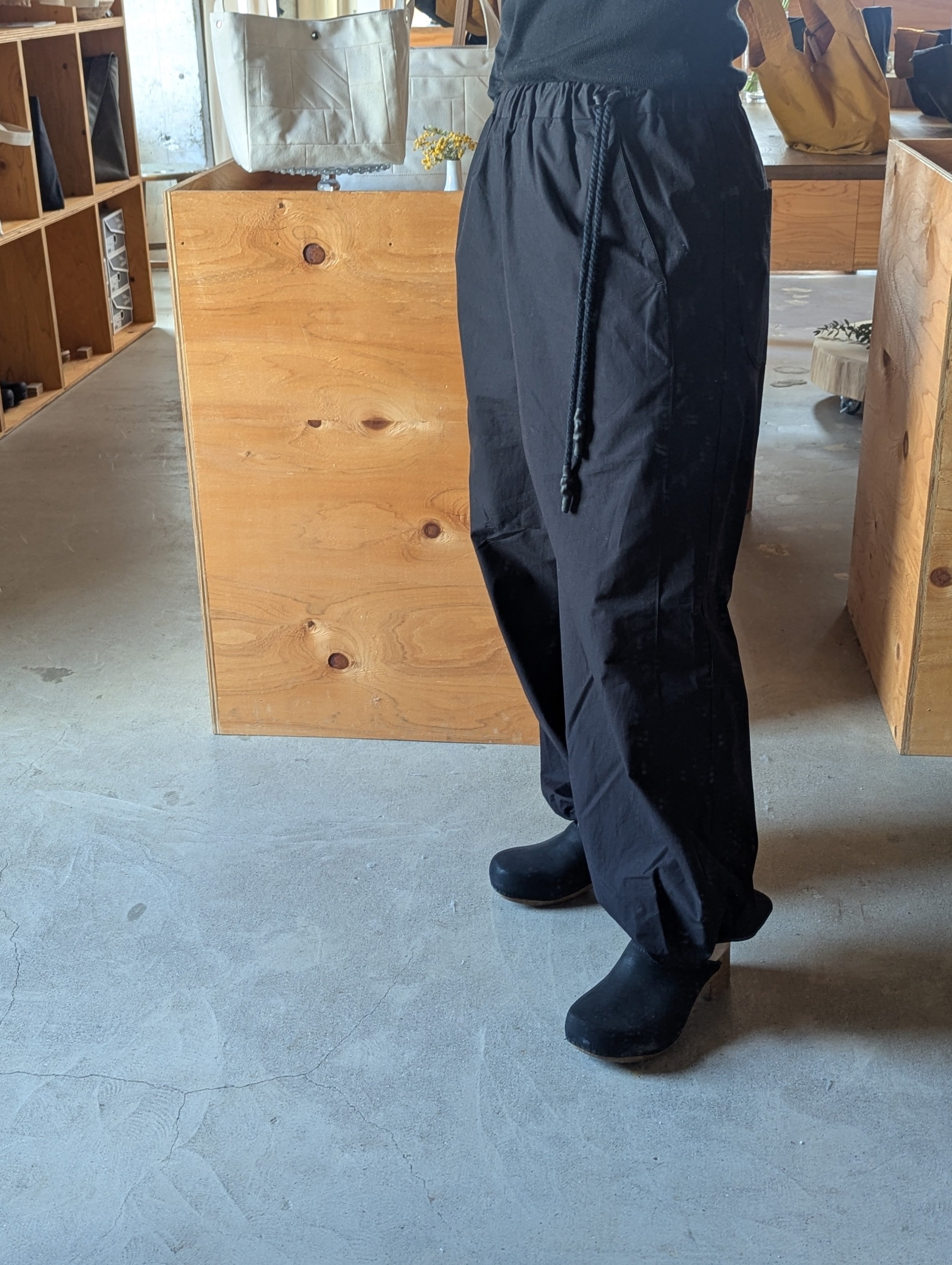 ウエスト 80cm(ロープで絞れます) / 股上 35cm / 股下 64cm / ヒップ 116cm / わたり幅 33cm / 裾幅 19.5cm(ドロスト入)