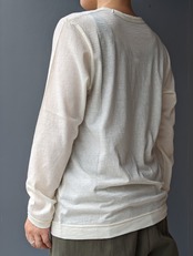 自然なムラ感に紡績した綿糸にウォッシャブルウール(オーストラリア産エクストラファインメリノ防縮加工)をブレンドしてやや甘めに編み立てた生地を使用した長袖Tシャツです。ソフトな肌触りとふっくらした風合いが特徴。