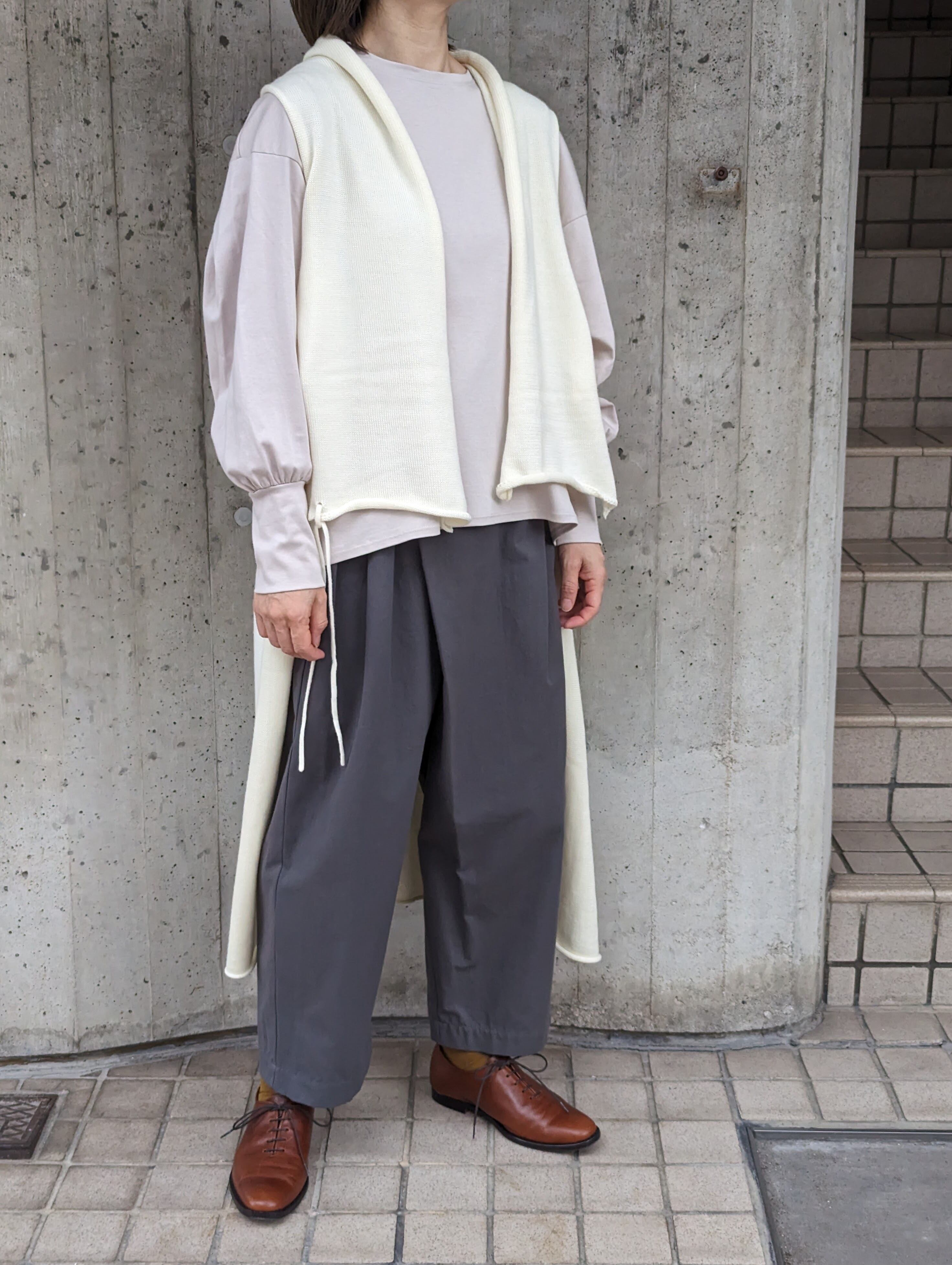 形だけではなく、素材感も魅力です。ウールだけどまるでコットンのような質感で、長い季節楽しんでいただけます。
