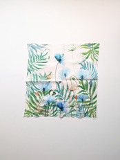 ハンカチはもちろん、首元に巻いたり、バッグに結び付けたりとスカーフのような使い方も楽しめます。まるで絵画のようなタッチのアーティスティックさが魅力。デザインは水彩を得意とする女性のアーティスト。周りのかがり縫いは繊細で美しい仕上がりを印象付けます。
