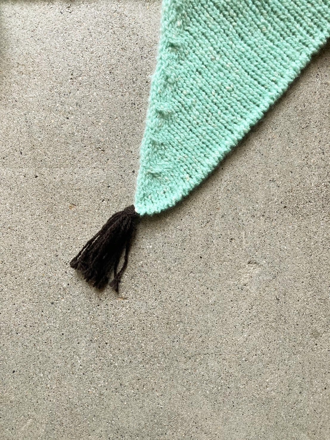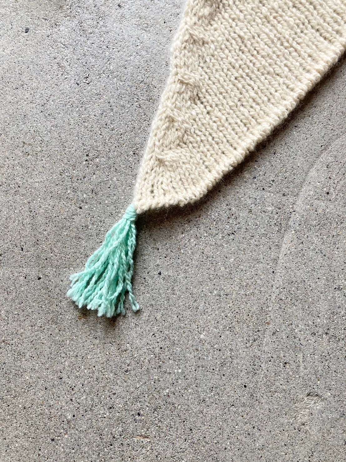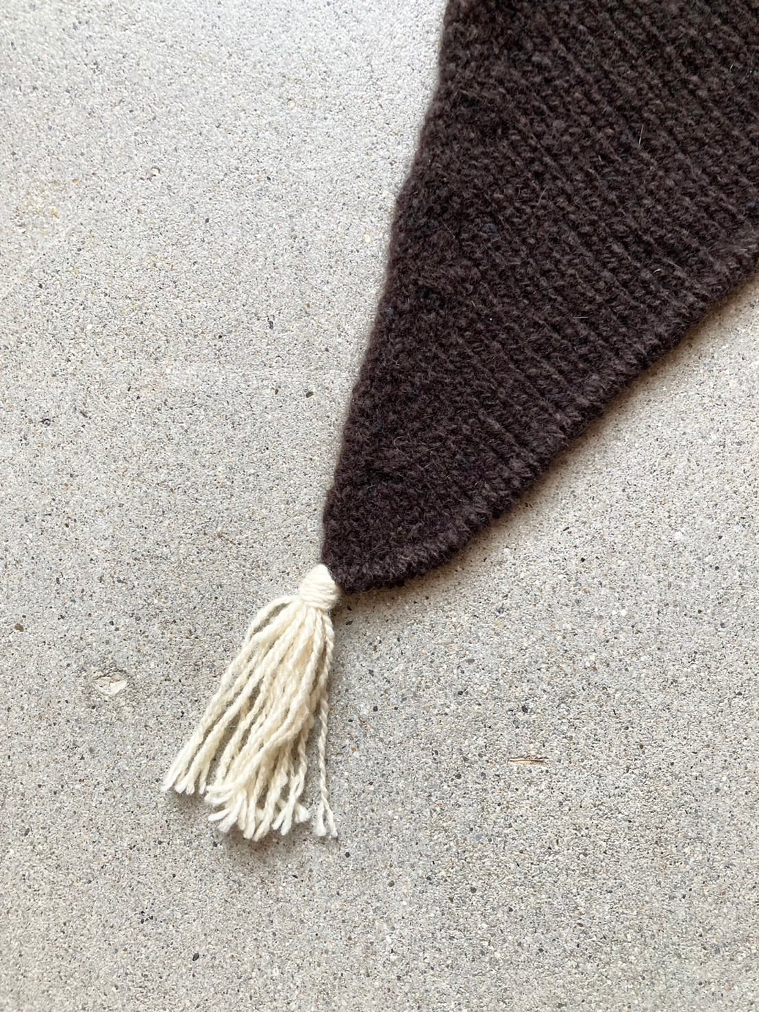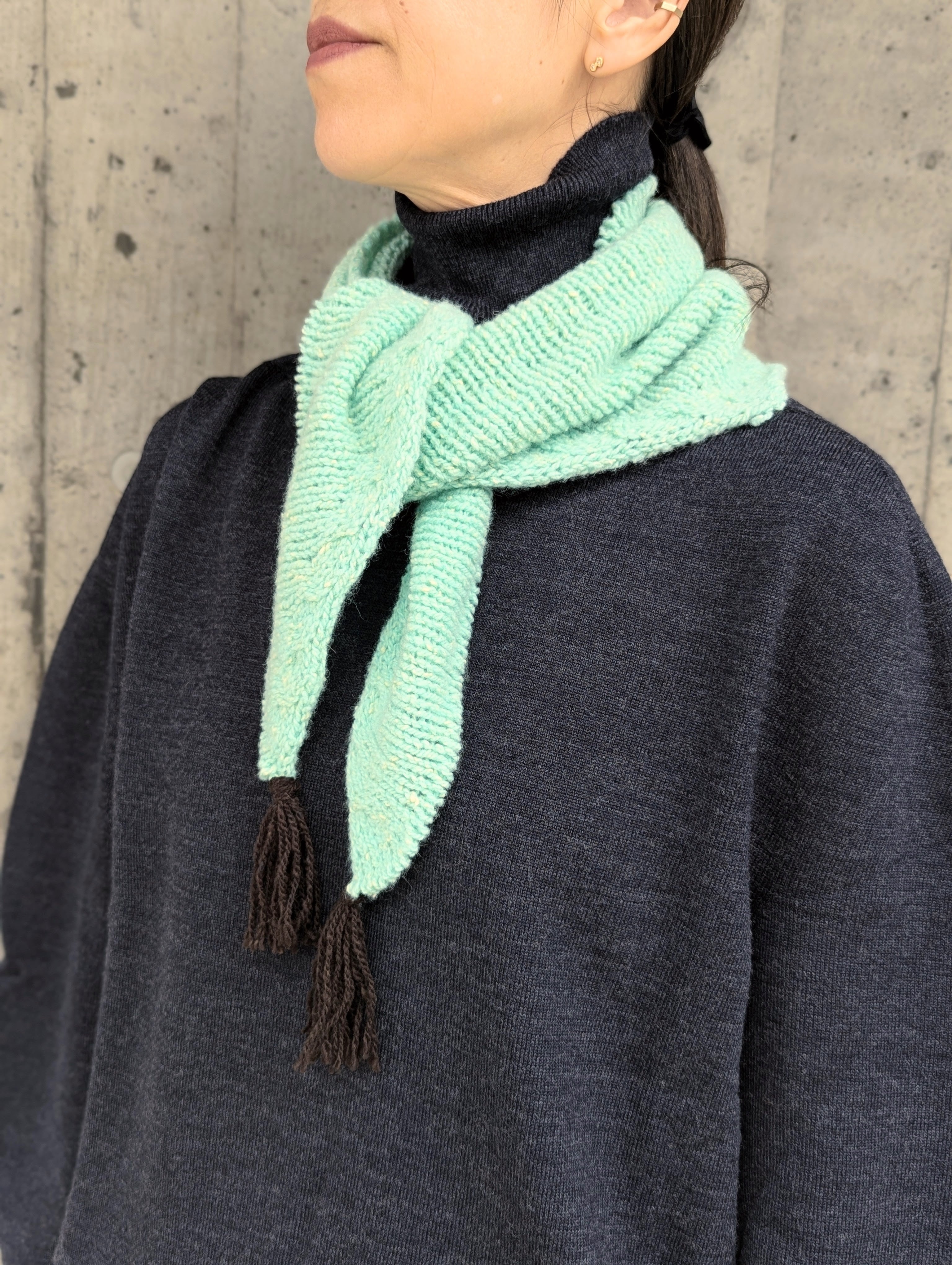 ベースとフリンジのカラーリングがキュートな三角ストール