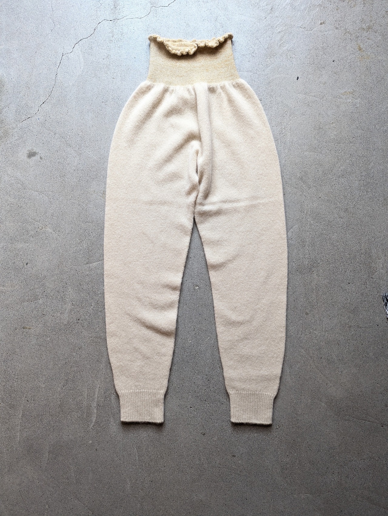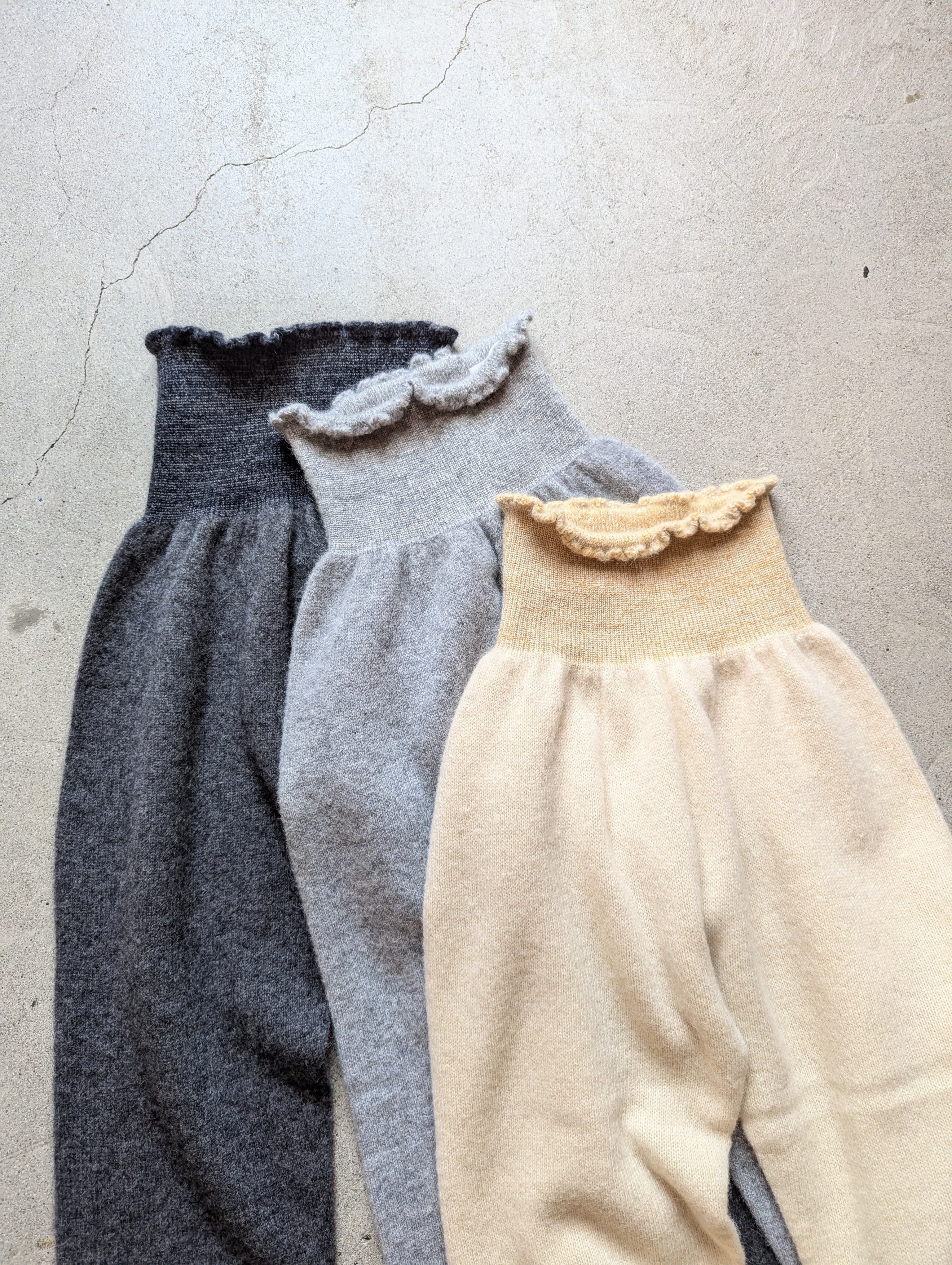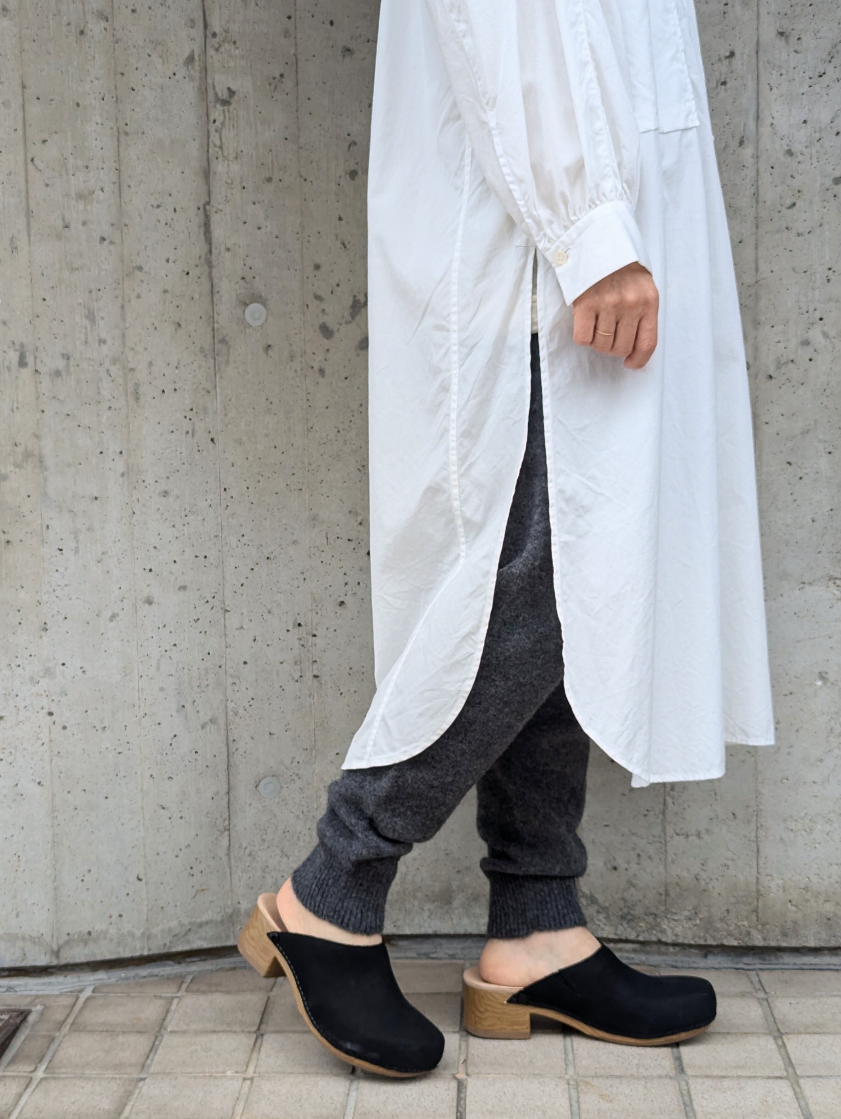履くとスッキリとした印象なので、スエットパンツを履く感じでカジュアルに着ていただけます。ワンピースの下に履くのもおすすめでとても暖かく、裾からちらりと見えるニット素材が目を惹きます。