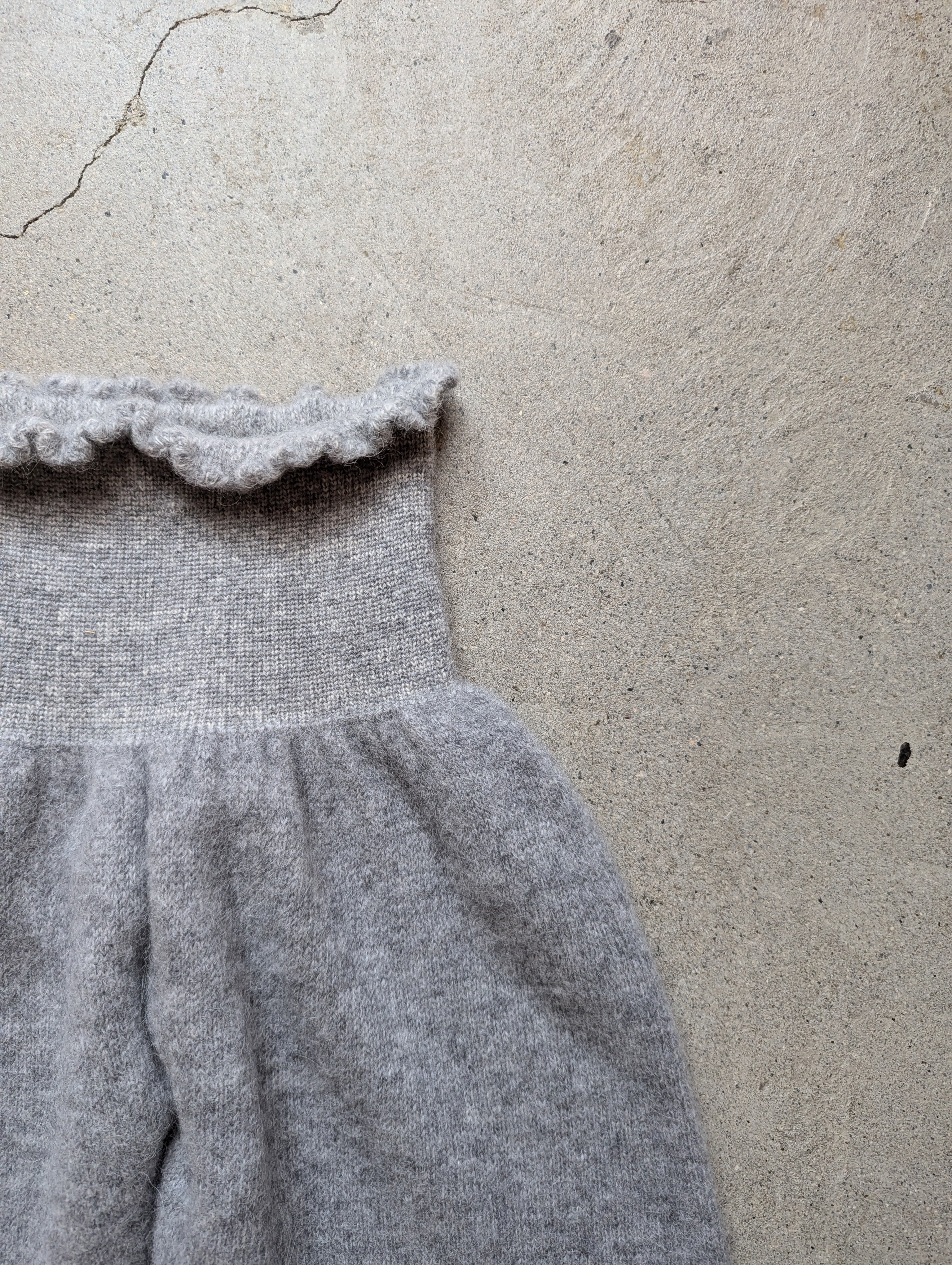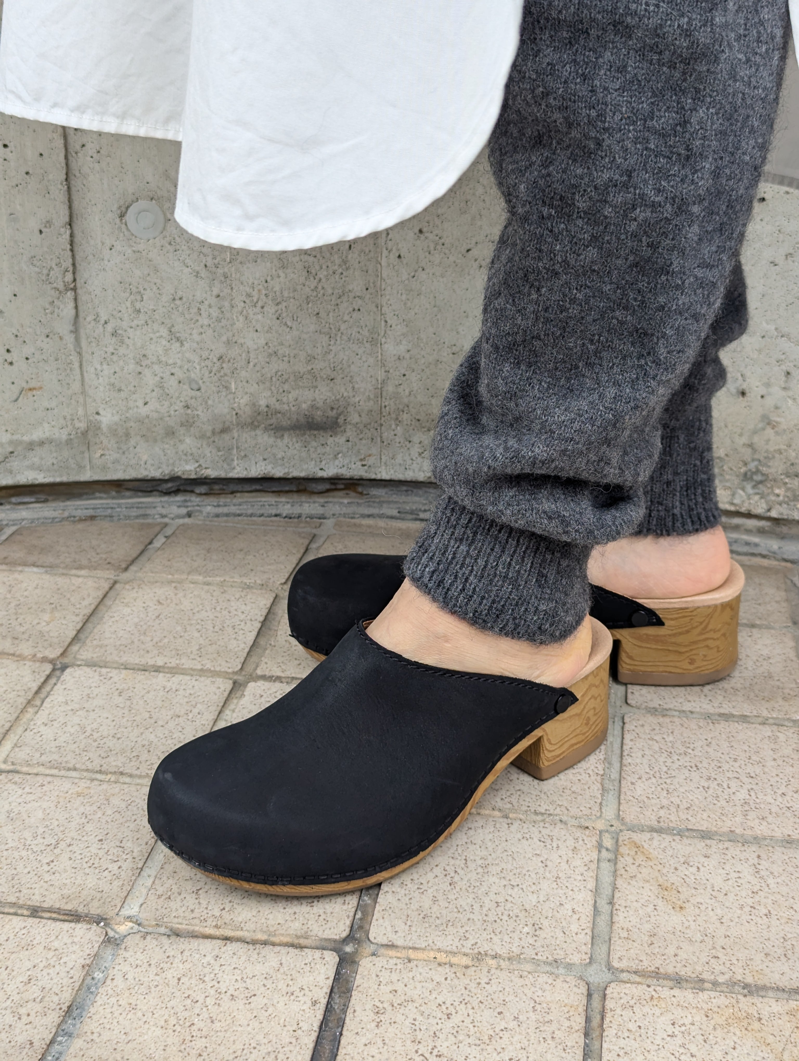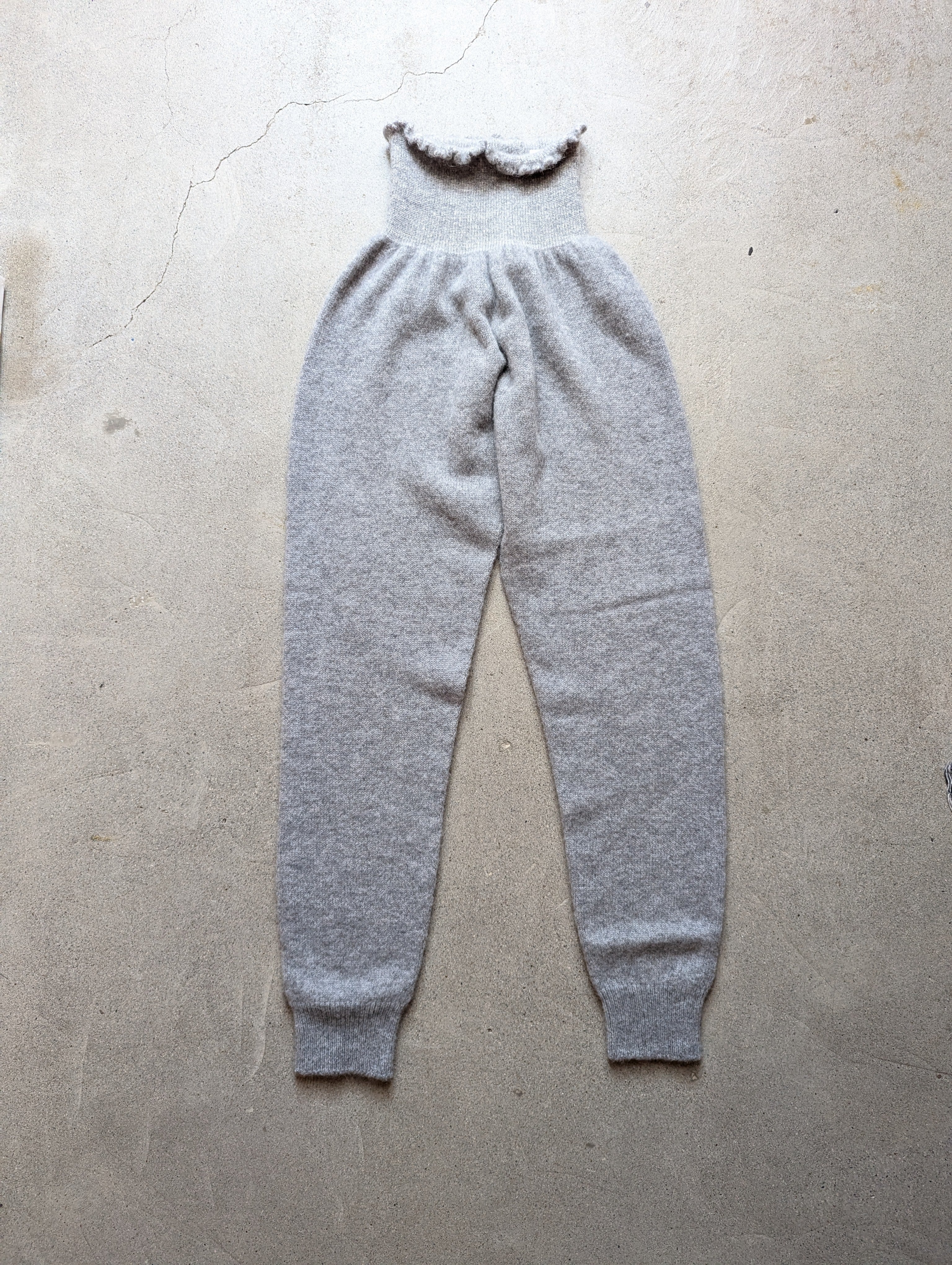 履くとスッキリとした印象なので、スエットパンツを履く感じでカジュアルに着ていただけます。ワンピースの下に履くのもおすすめでとても暖かく、裾からちらりと見えるニット素材が目を惹きます。