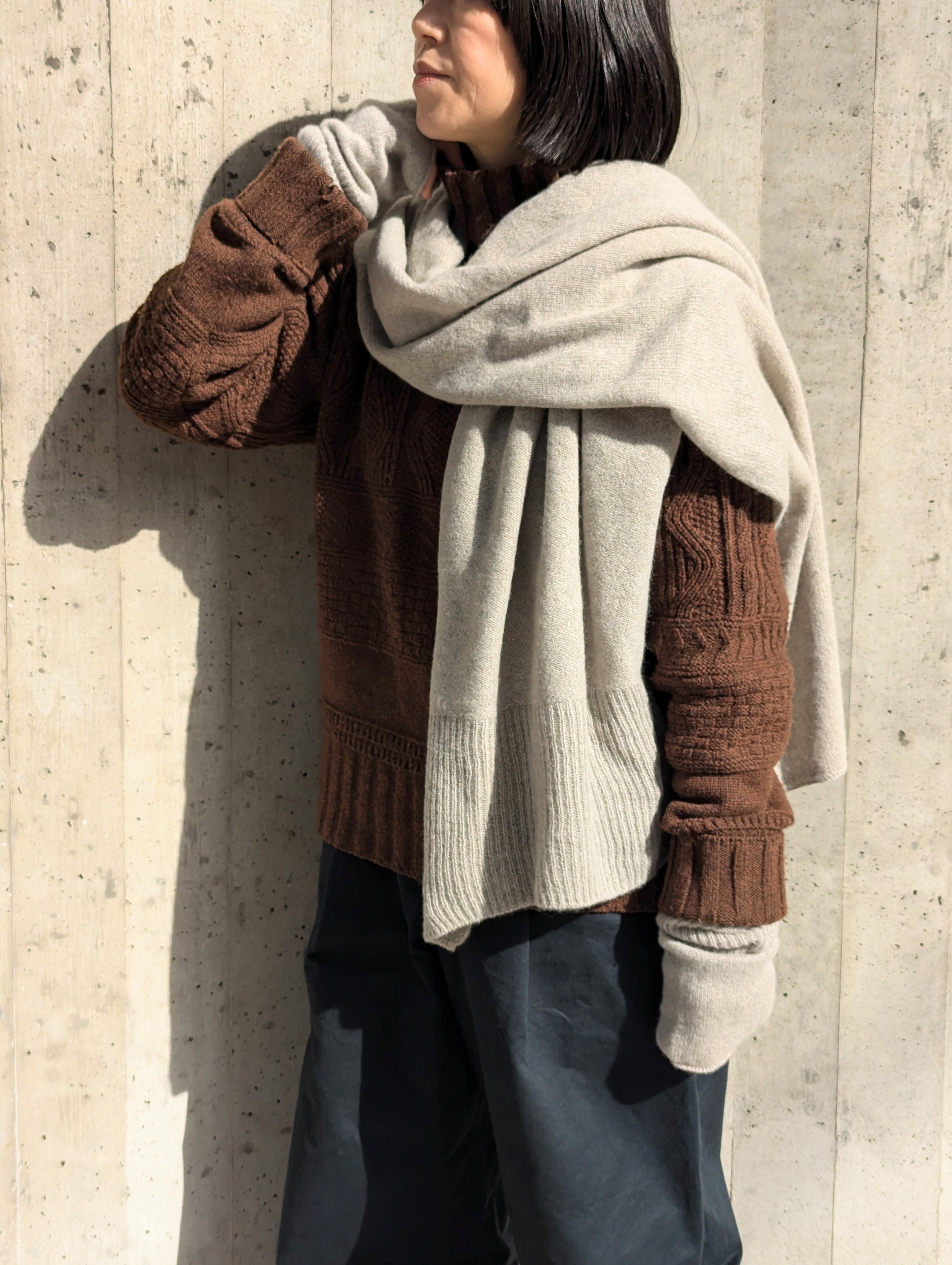厚すぎず、薄すぎない適度なボリュームも魅力で、フンワリと巻いたり・キュッとコンパクトに巻いたりその日のお洋服によってアレンジを楽しんでください。